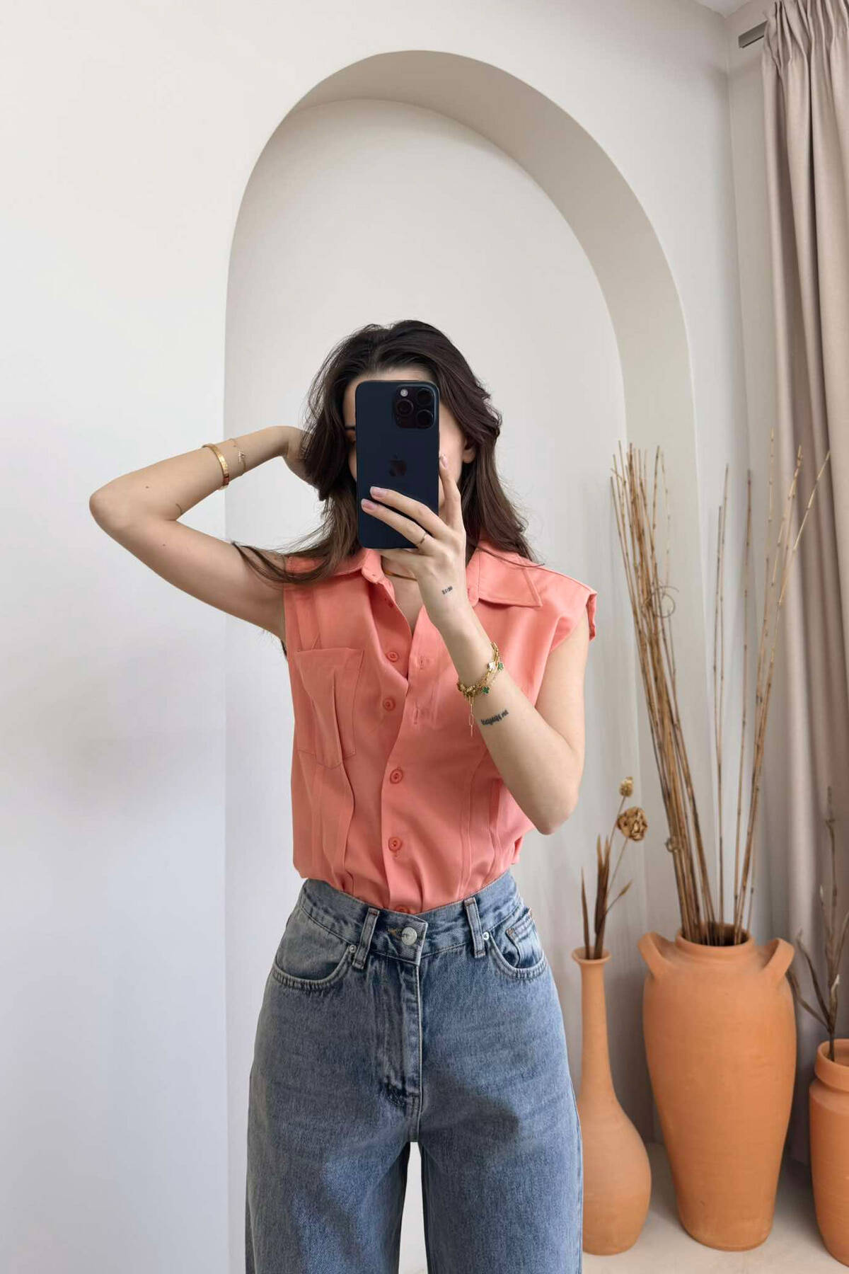 SIPMLE ONE COLOR WOMAN SHIRTS SALMON/SALMON