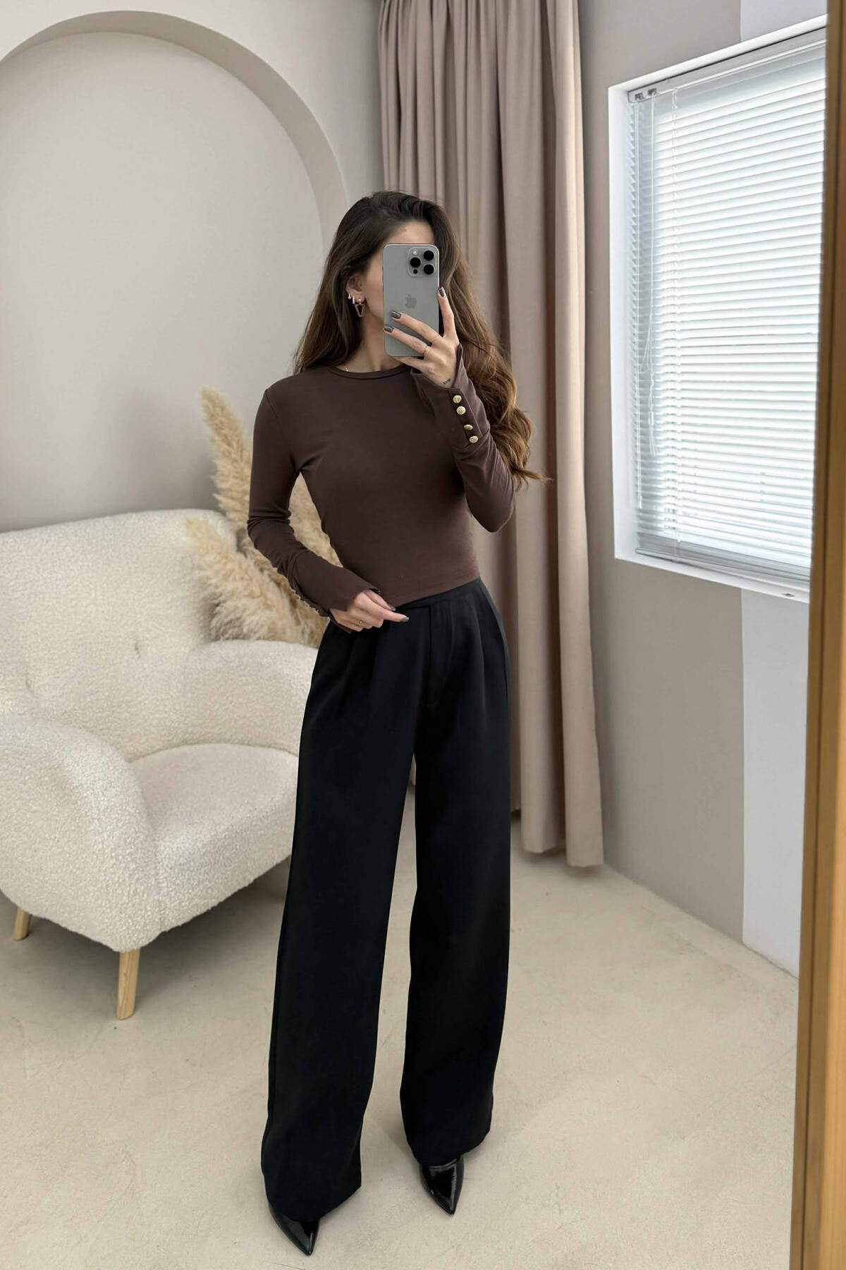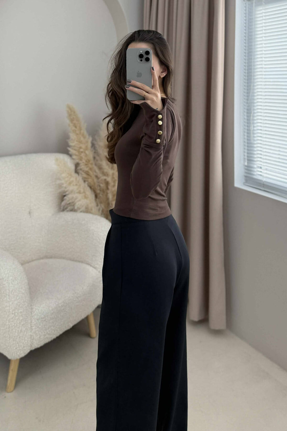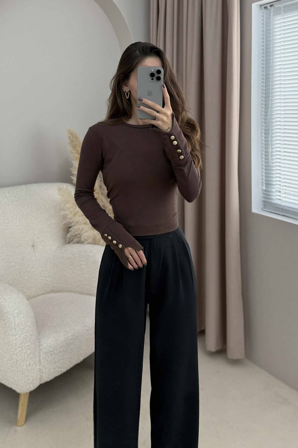 SLEEVE BUTTONS ONE COLOR WOMEN SWEATSHIRT BROWN/KAFE