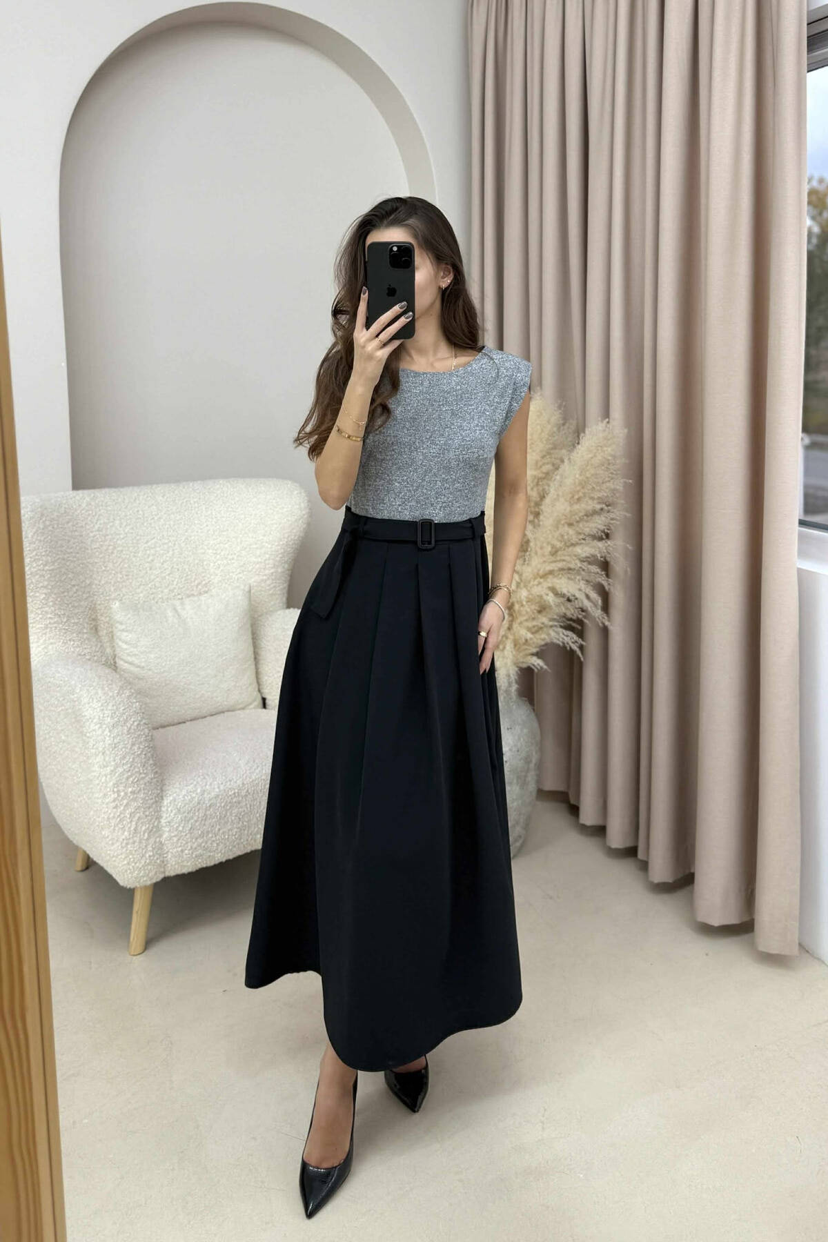 SLEEVELESS BELT DETAIL WOMEN DRESS GREY/GRI
