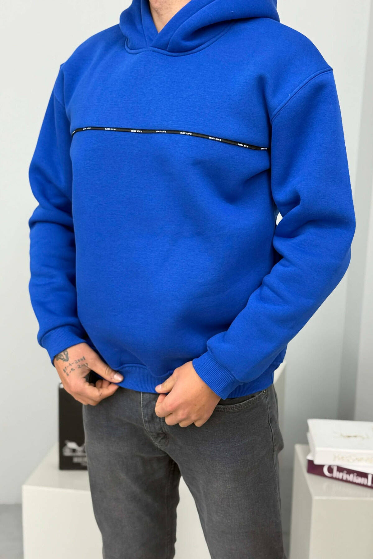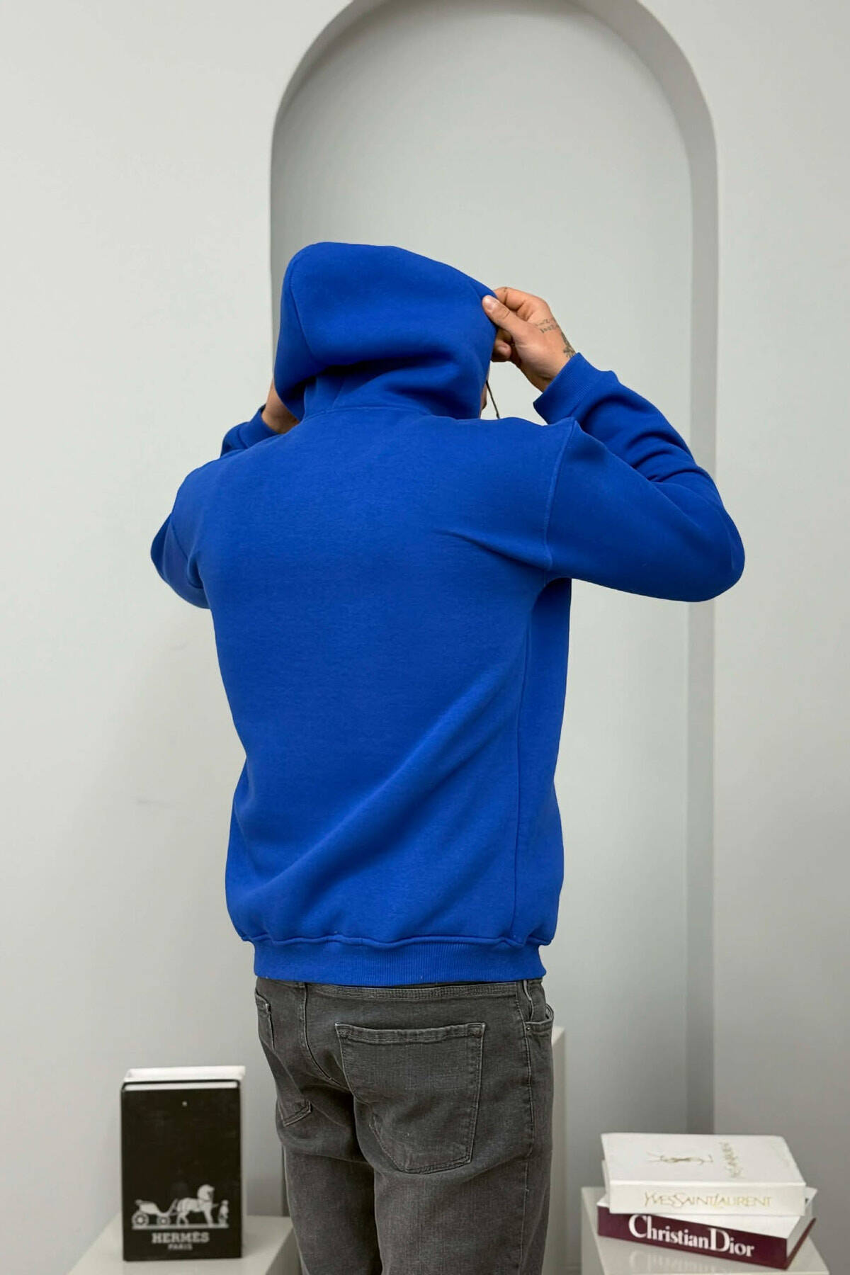 SMALL DETAIL ONE COLOR FLUFFY MEN HOODIE BLUE/BLU