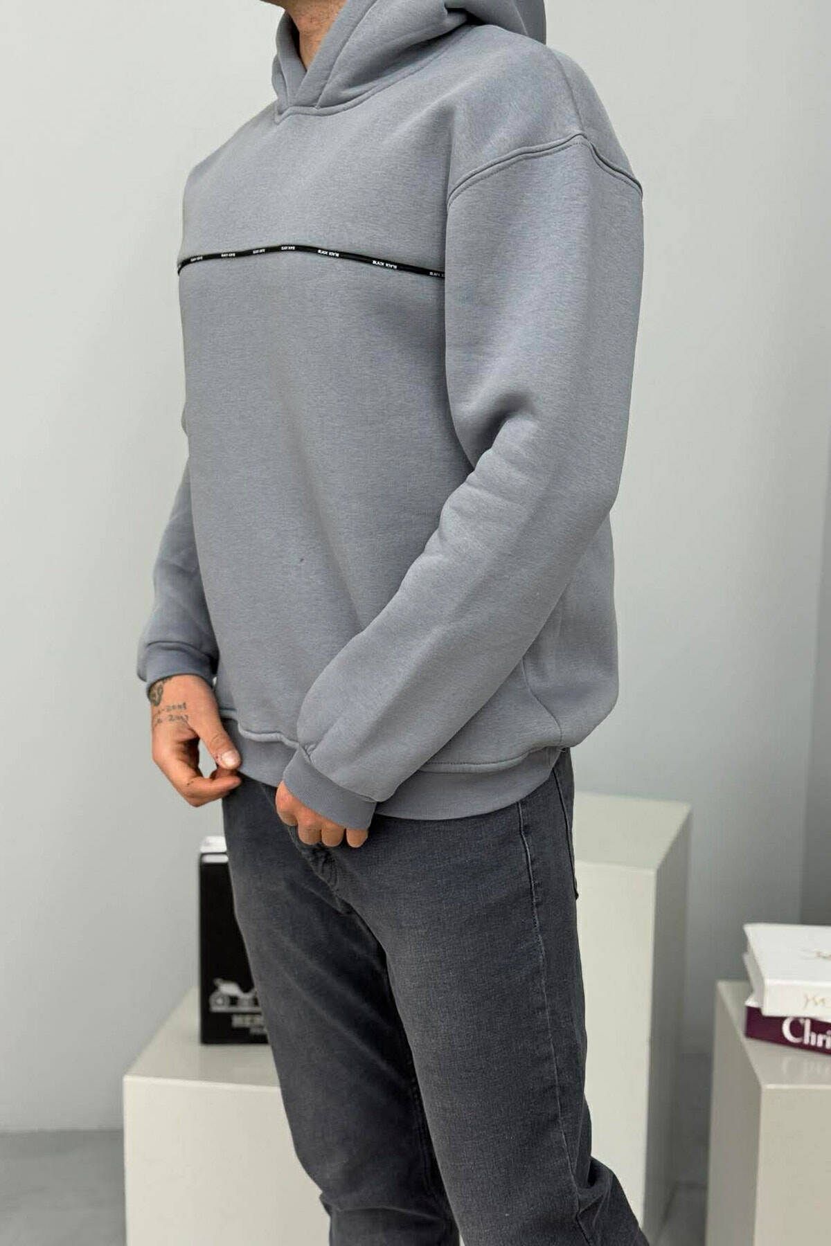 SIMPLE DESIGN ONE COLOR MEN HOODIE GREY/GRI