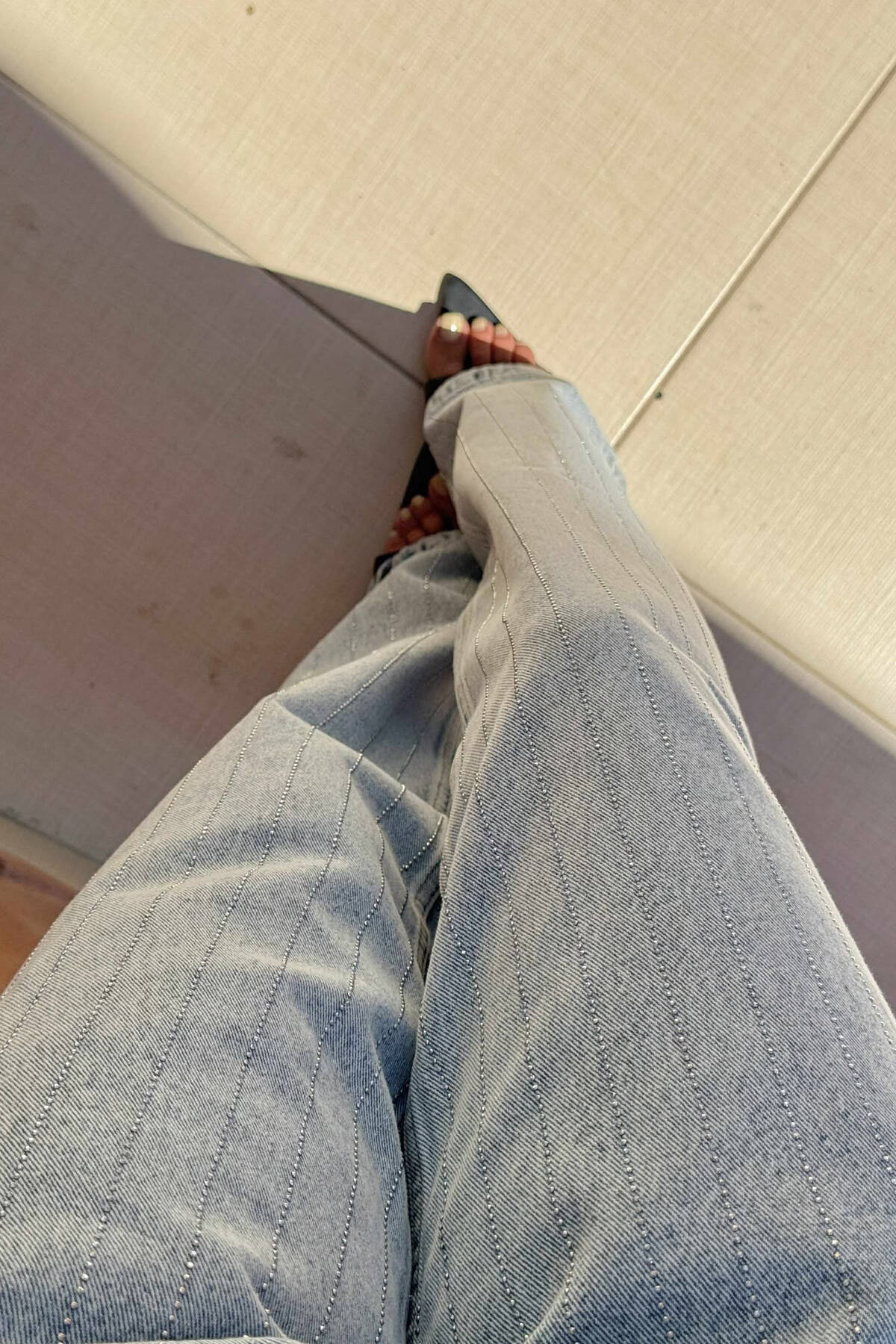 SMALL DIAMONDS DETAILS WIDE LEG WOMEN JEANS LIGHTBLUE/BZ