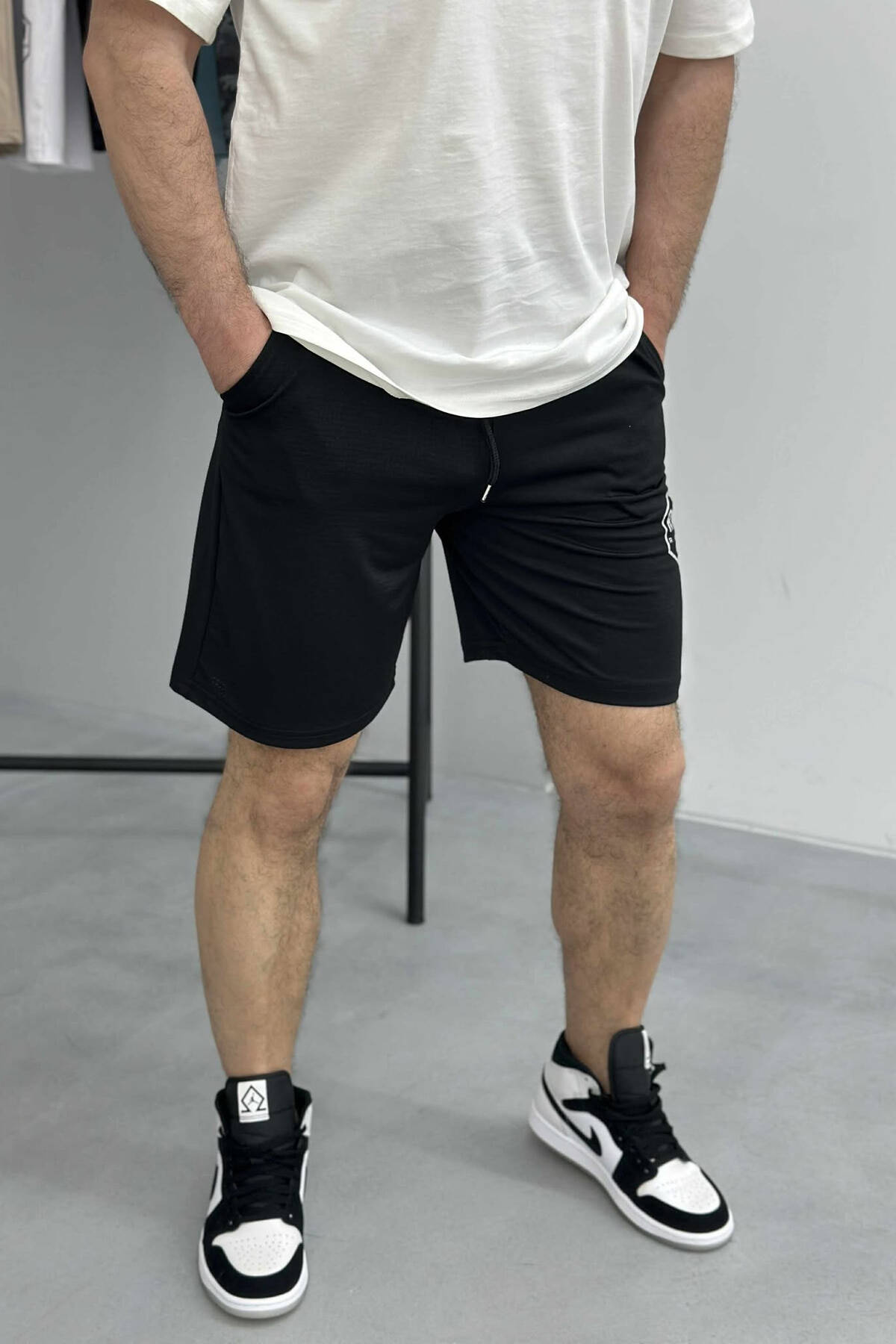 ONE COLOR SIMPLE MEN SHORT SWEATPANTS BLACK/ E ZEZE