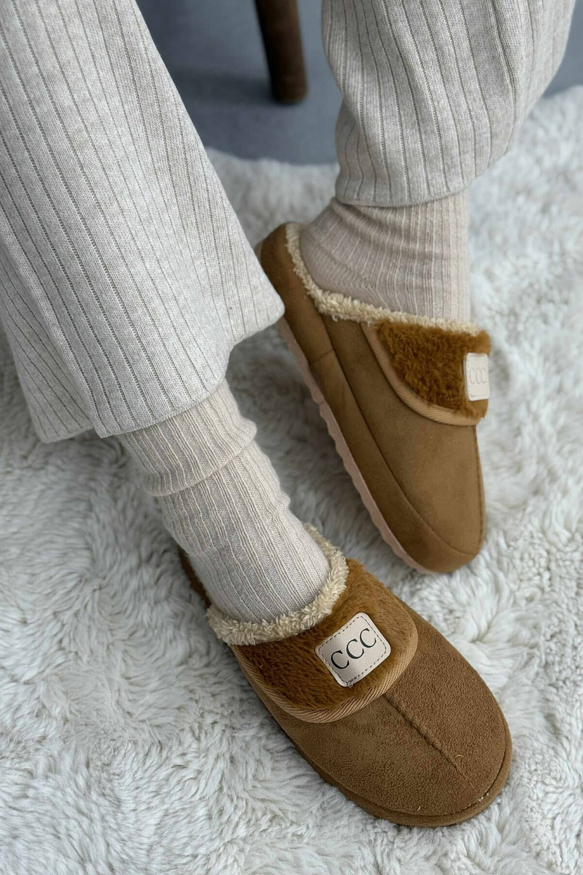 ONE COLOR TEDDY WOMEN SLIPPERS DARK BEIGE/BEZHE ERRET