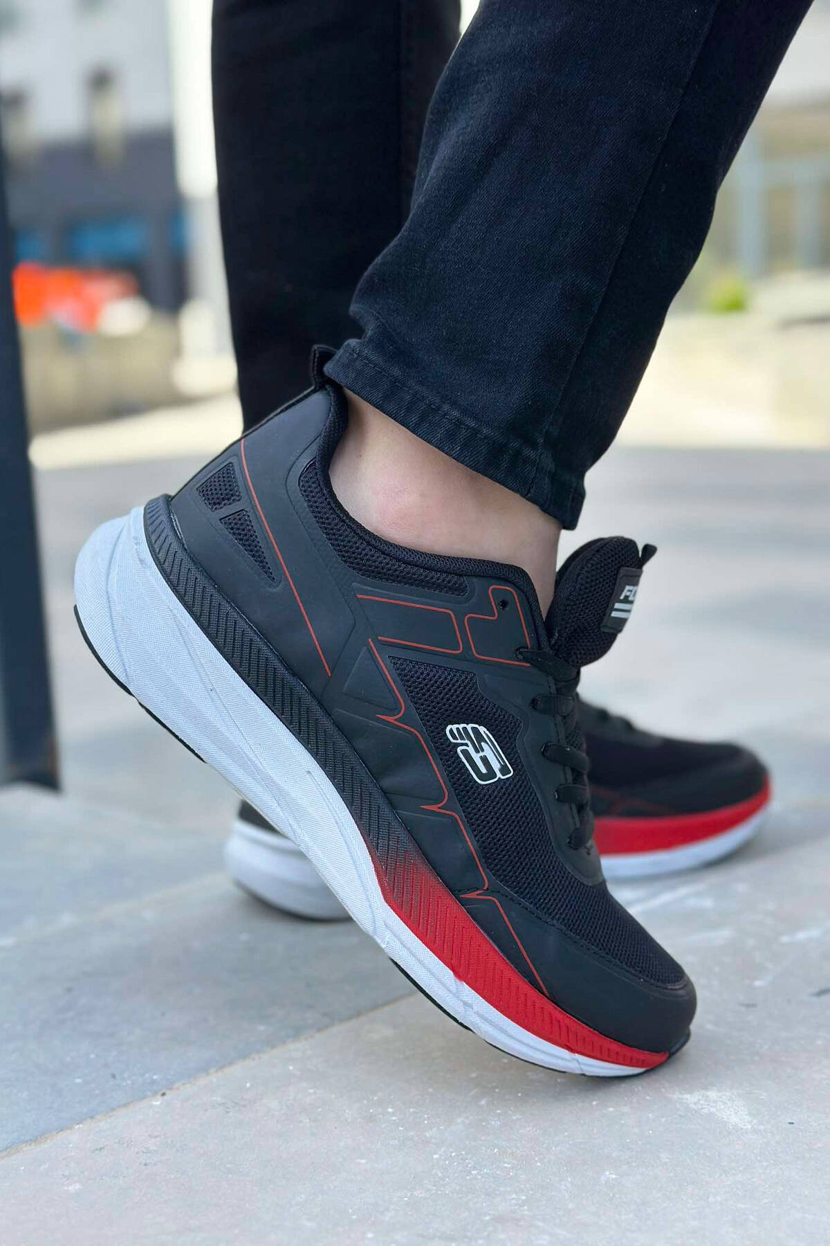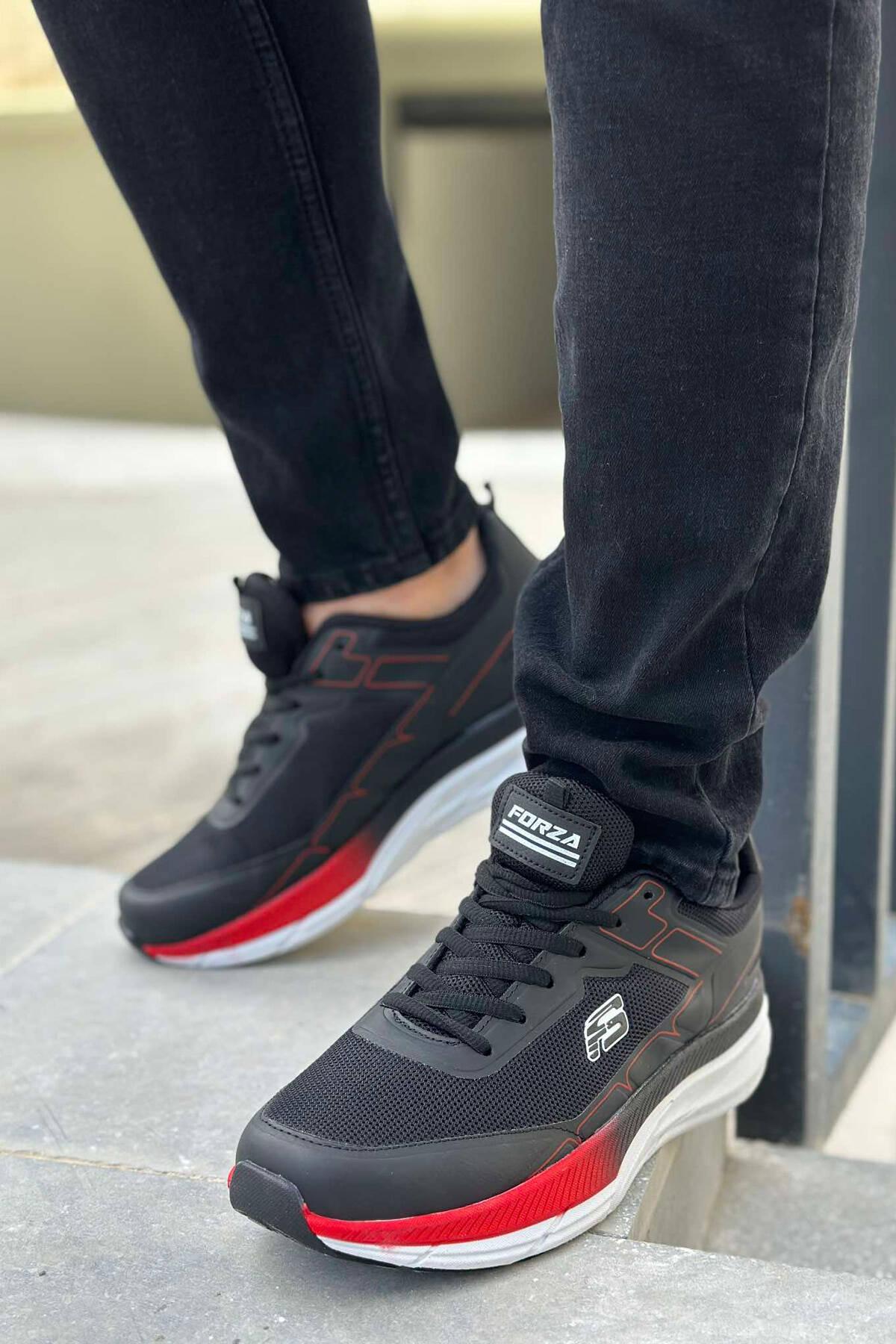 SMALL LOGO PLATFORM MEN SNEAKERS BLACK-RED/ZEKU