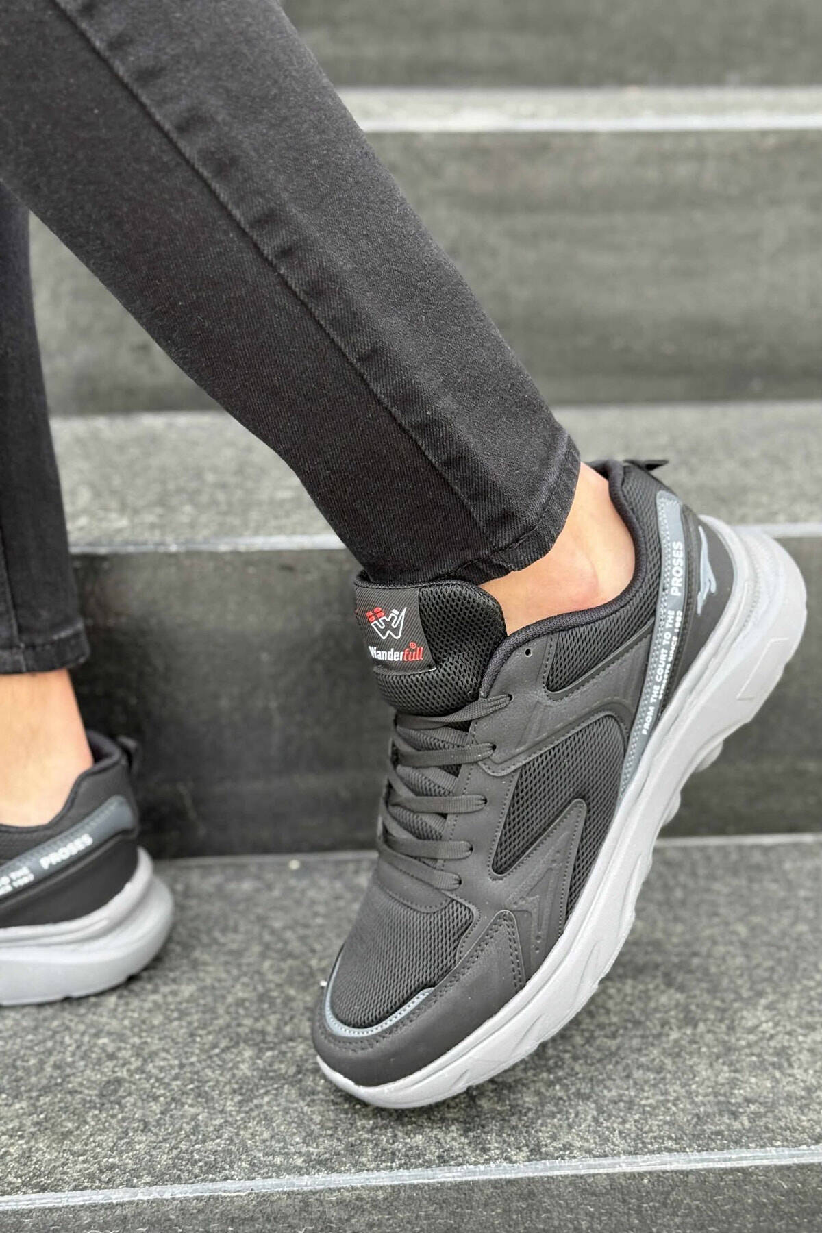 SIMPLE ONE COLOR LACING MEN SNEAKERS DARK GREY/GEE
