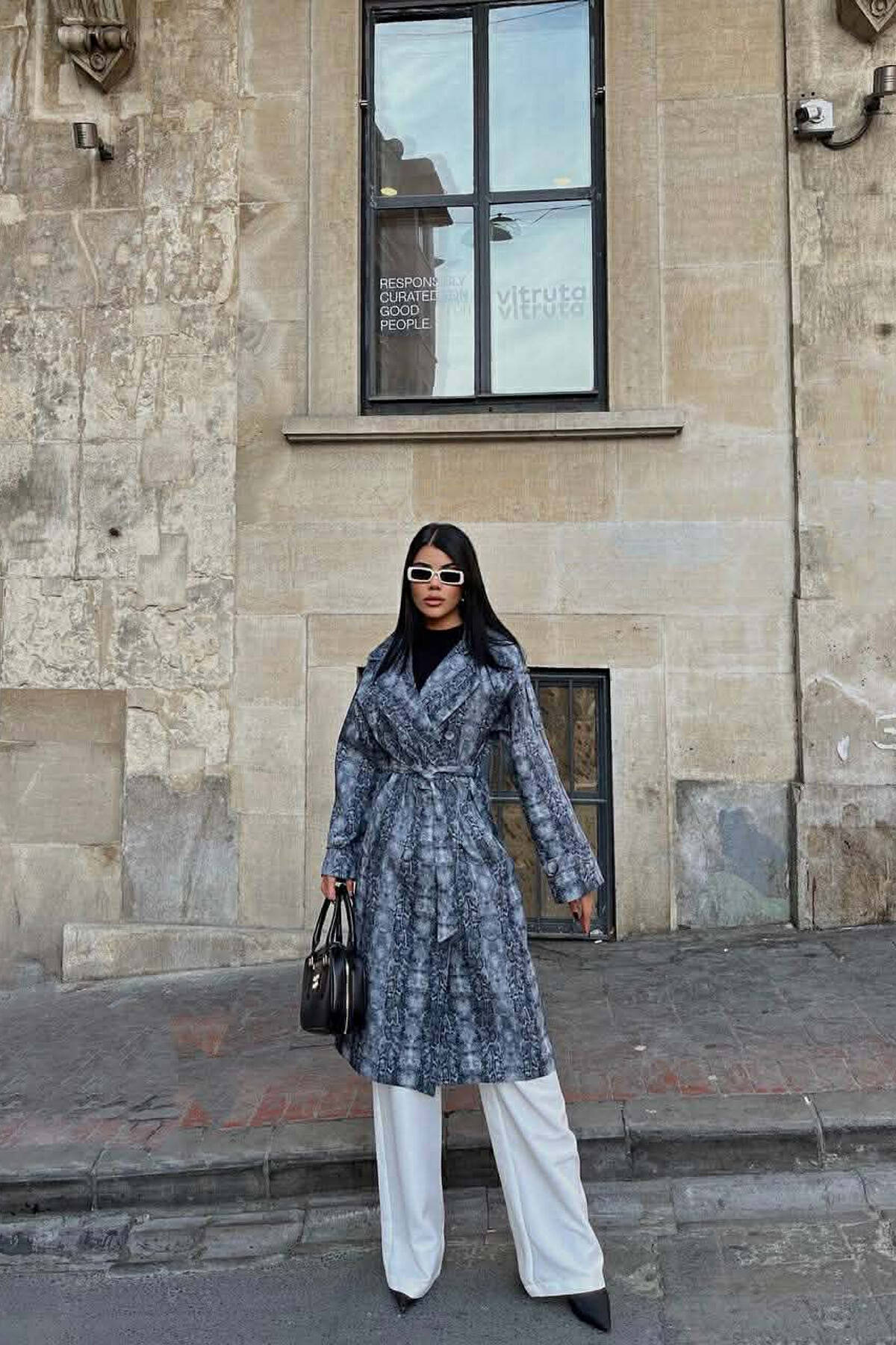 SNAKE DESIGN BELT DETAIL WOMEN TRENCH COAT GREY/GRI