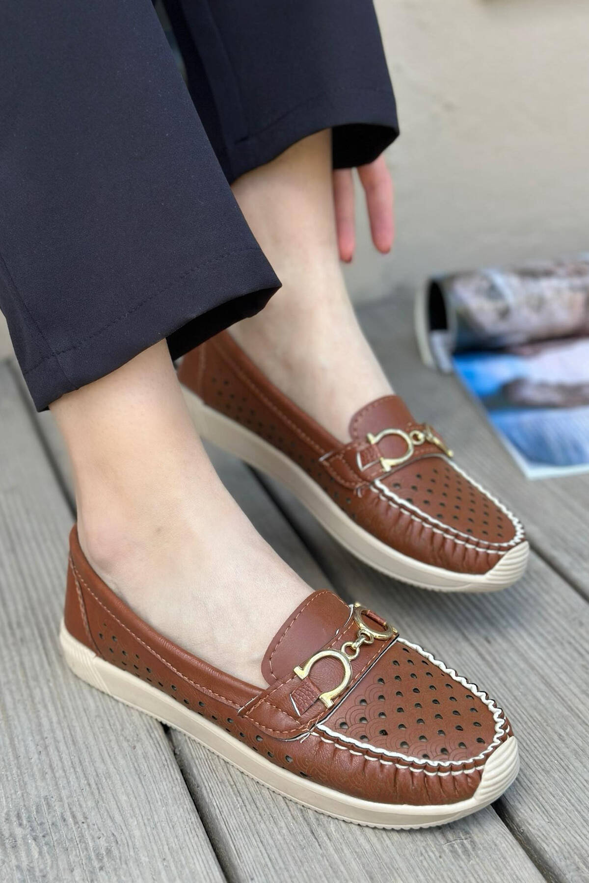 SPACE ONE COLOR WOMAN LOAFERS CREAM-BROWN/KRKA