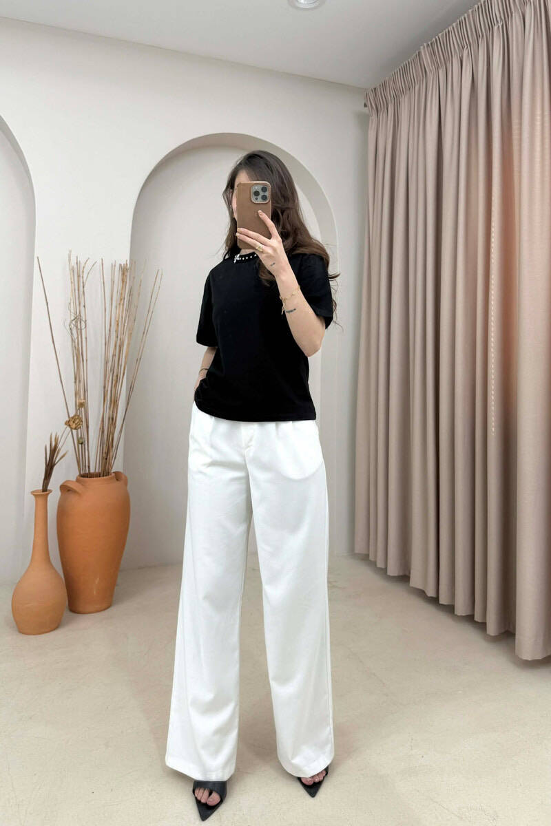 T-SHIRT ME DETAJE TEK PJESA E QAFES PER FEMRA NE NGJYRE TE BARDHE