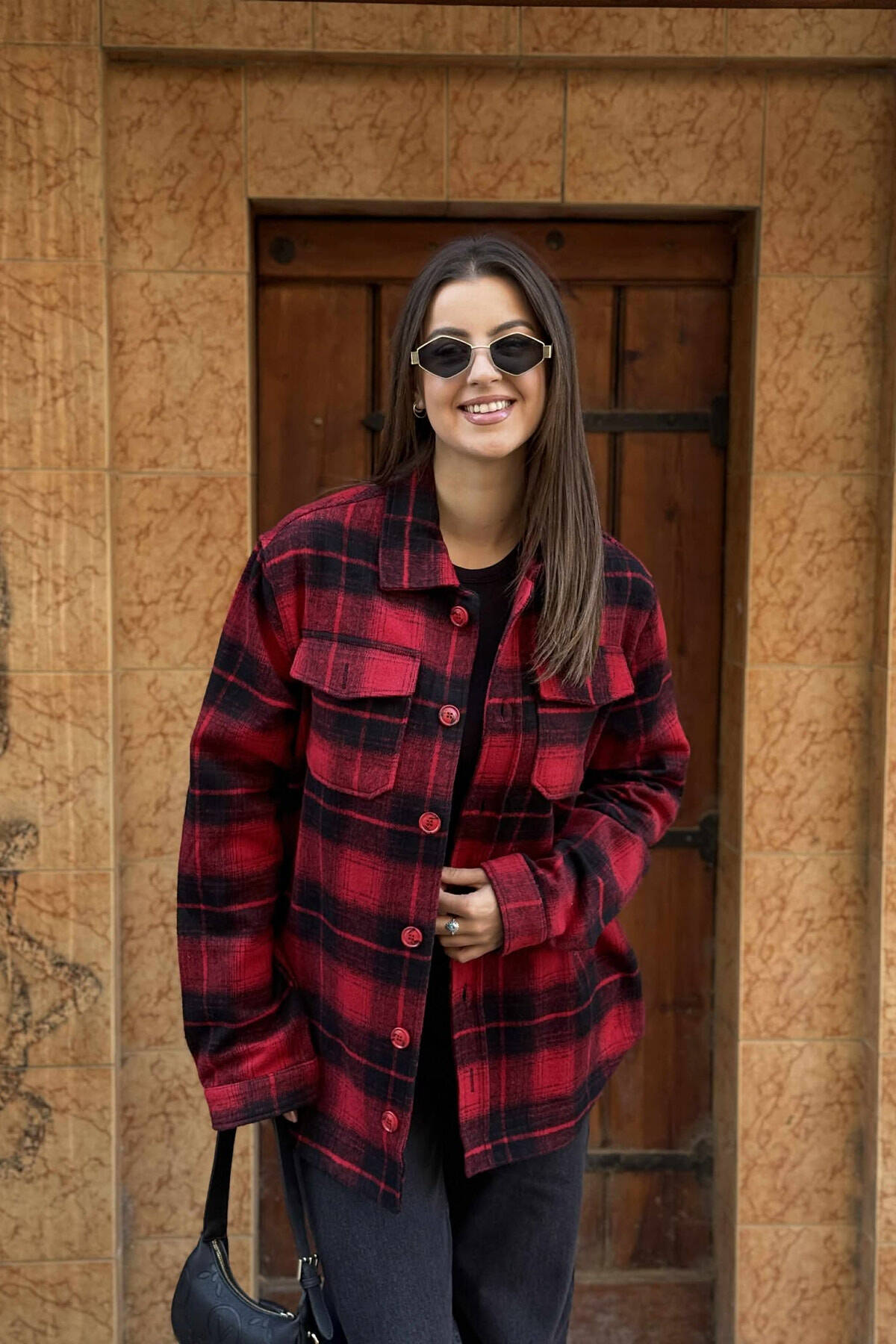 SQUARE DESIGN BUTTONED SIMPLE WOMEN JACKET RED/E KUQE