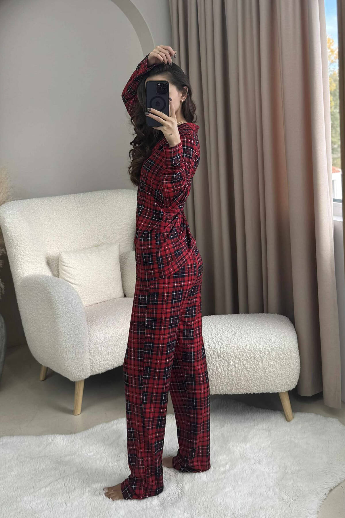SQUARED DESIGN SHIRT+ TROUSERS WOMEN PYJAMAS RED/E KUQE