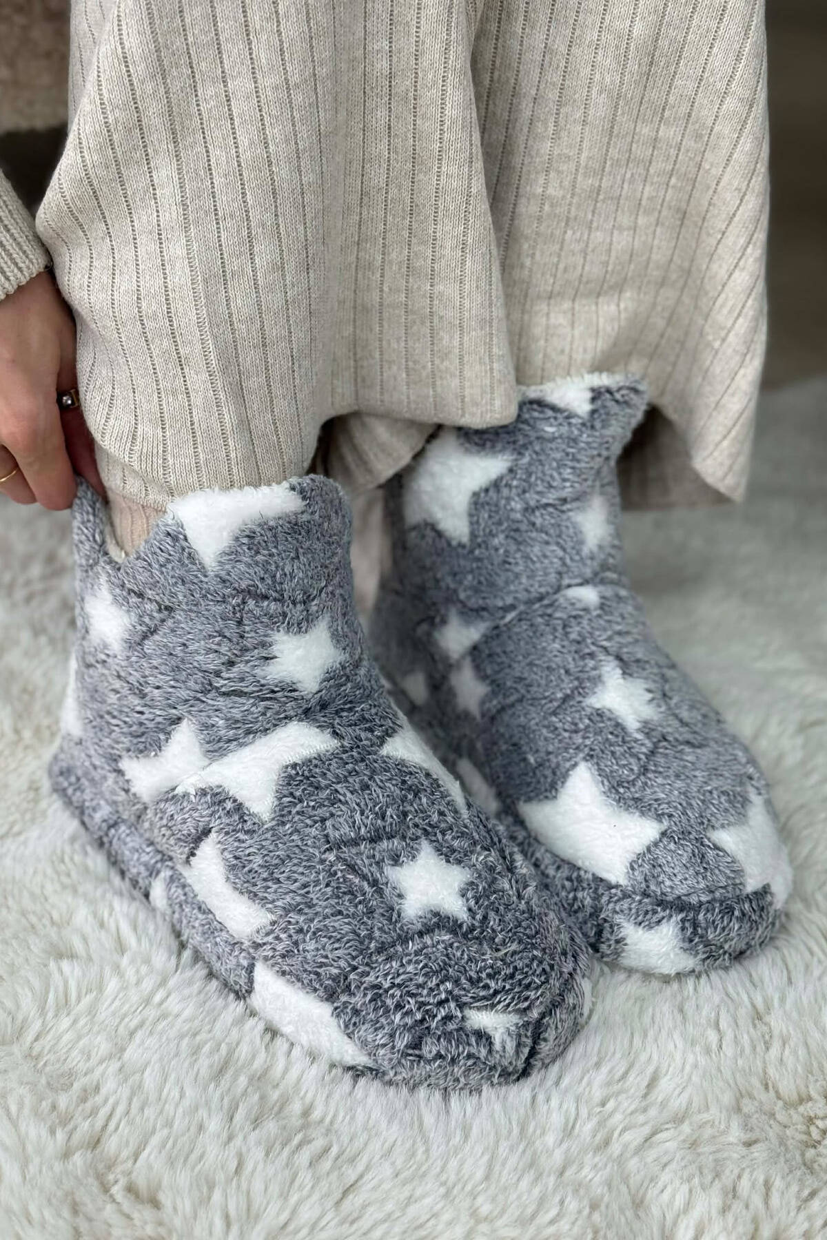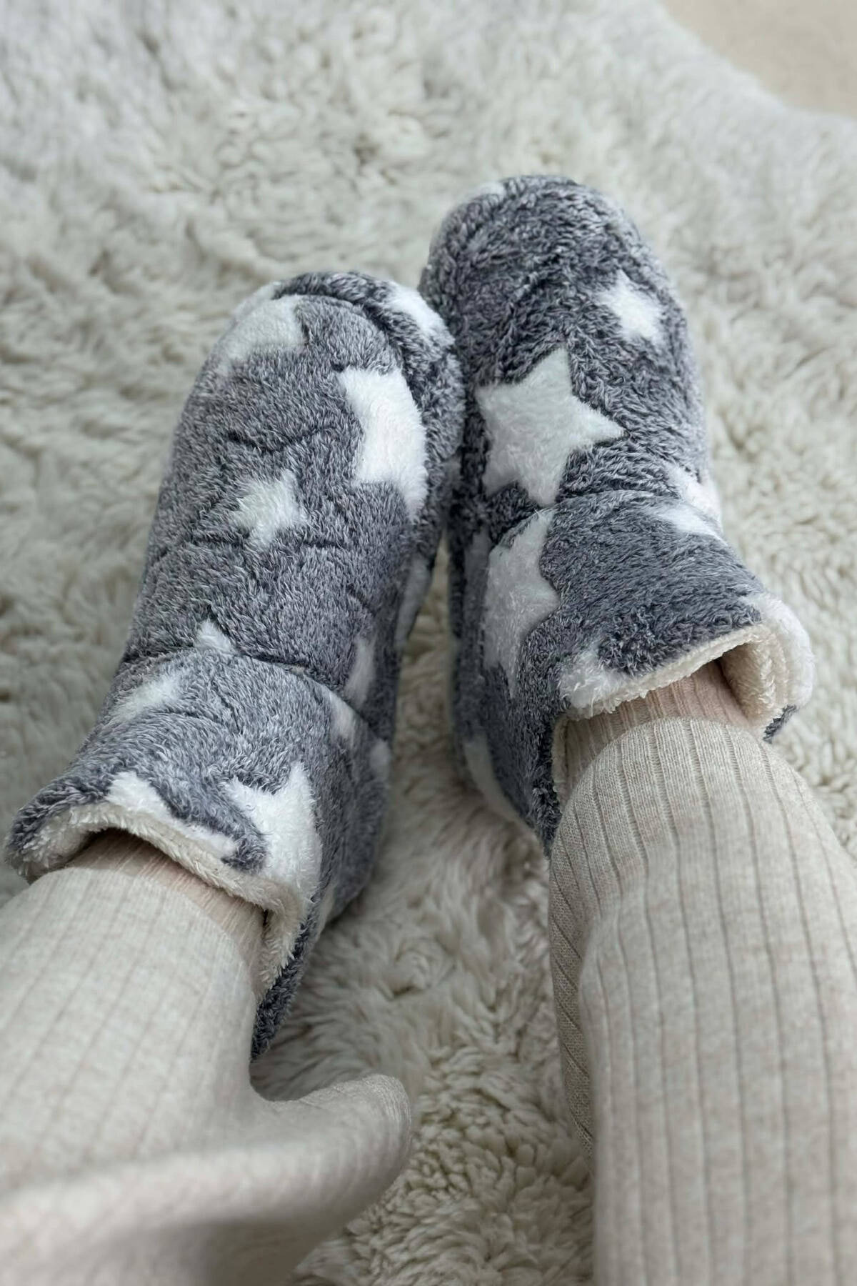 STAR DESIGN WOMAN ANKLE SLIPPERS GREY/GRI
