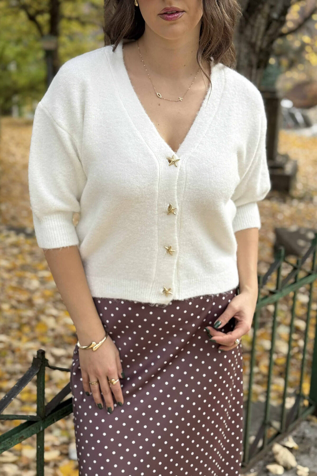 STARFISH BUTTONS SHORT SLEEVES WOMEN CARDIGAN WHITE-E BARDHE