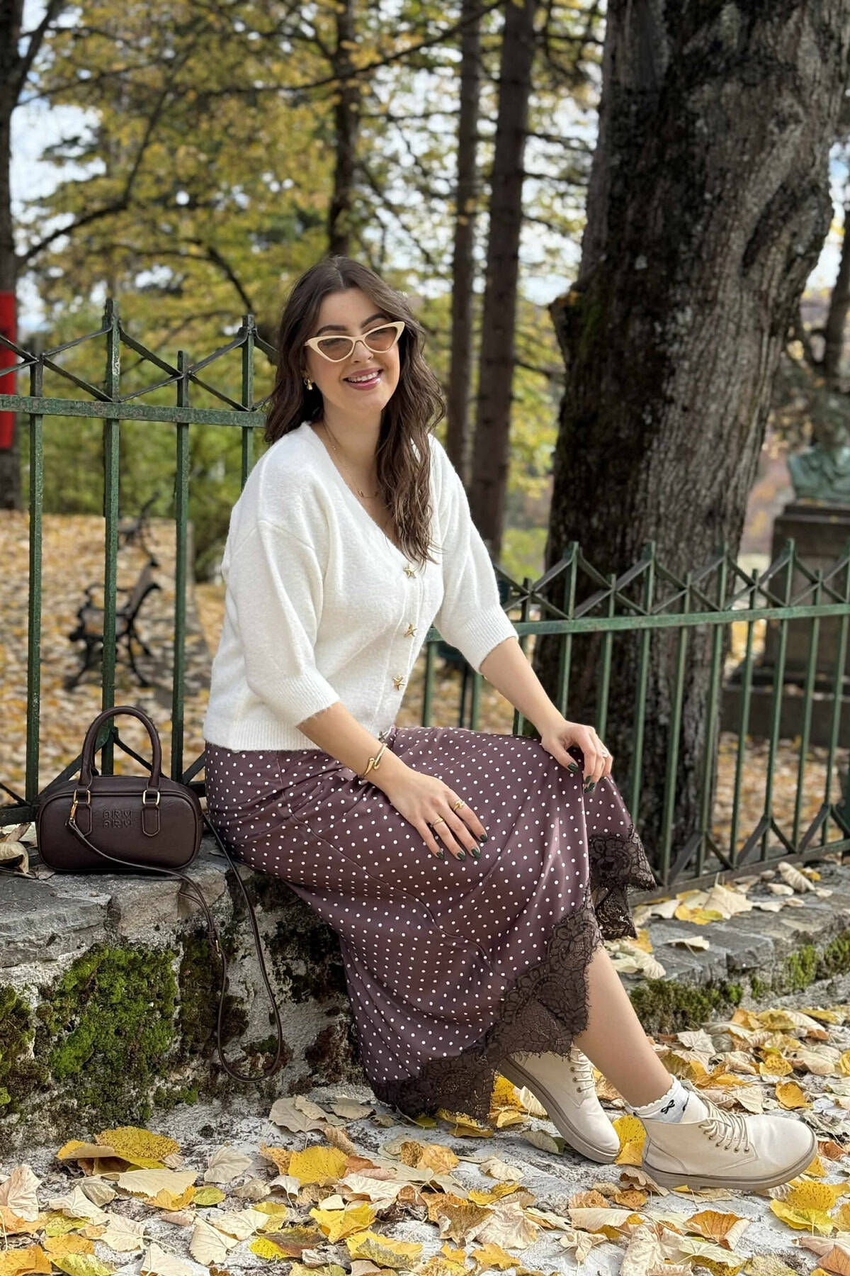 BUTTONED KNITTED LEO DESIGN WOMEN CARDIGAN BROWN/KAFE