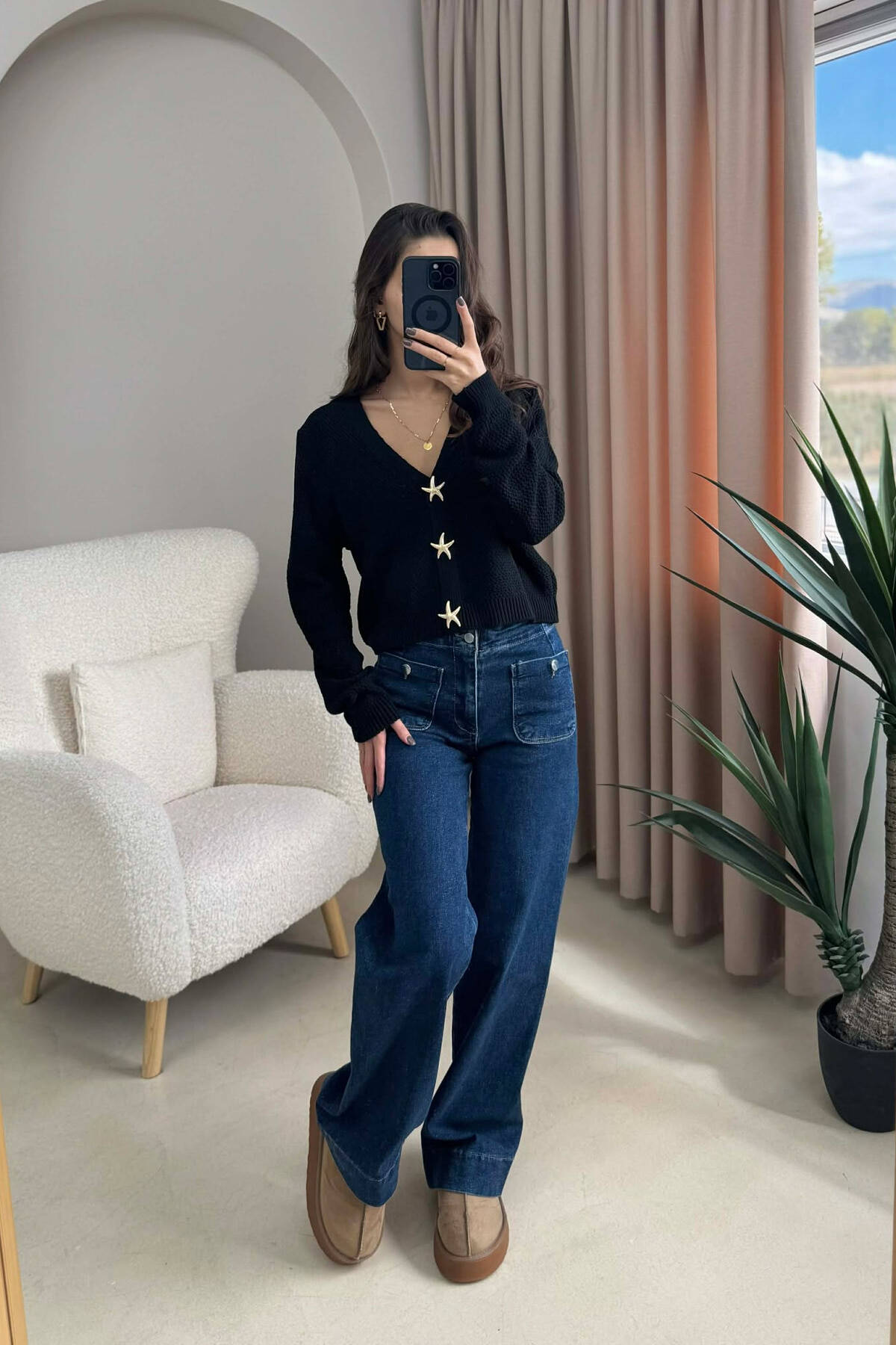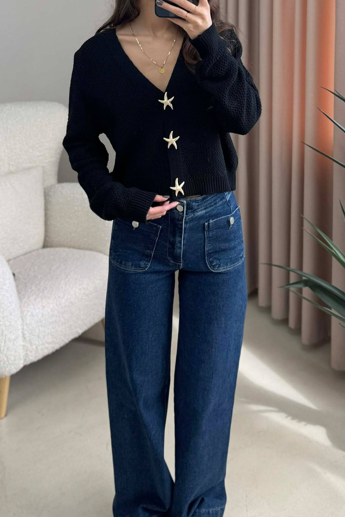 STARFISH BUTTONS SIMPLE WOMEN CARDIGAN BLACK/ E ZEZE