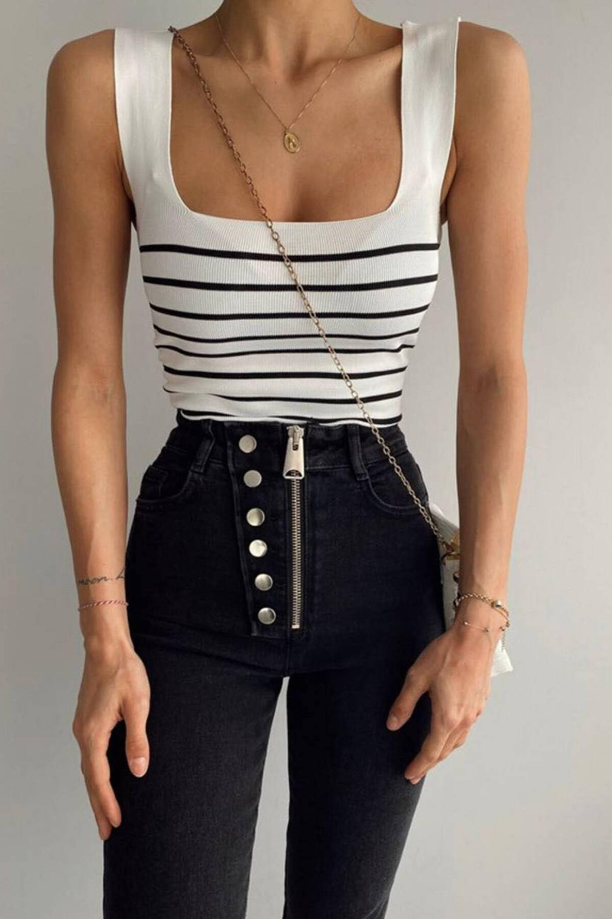 STRIPES SIMPLE WOMEN TANK TOP BLACK/ E ZEZE