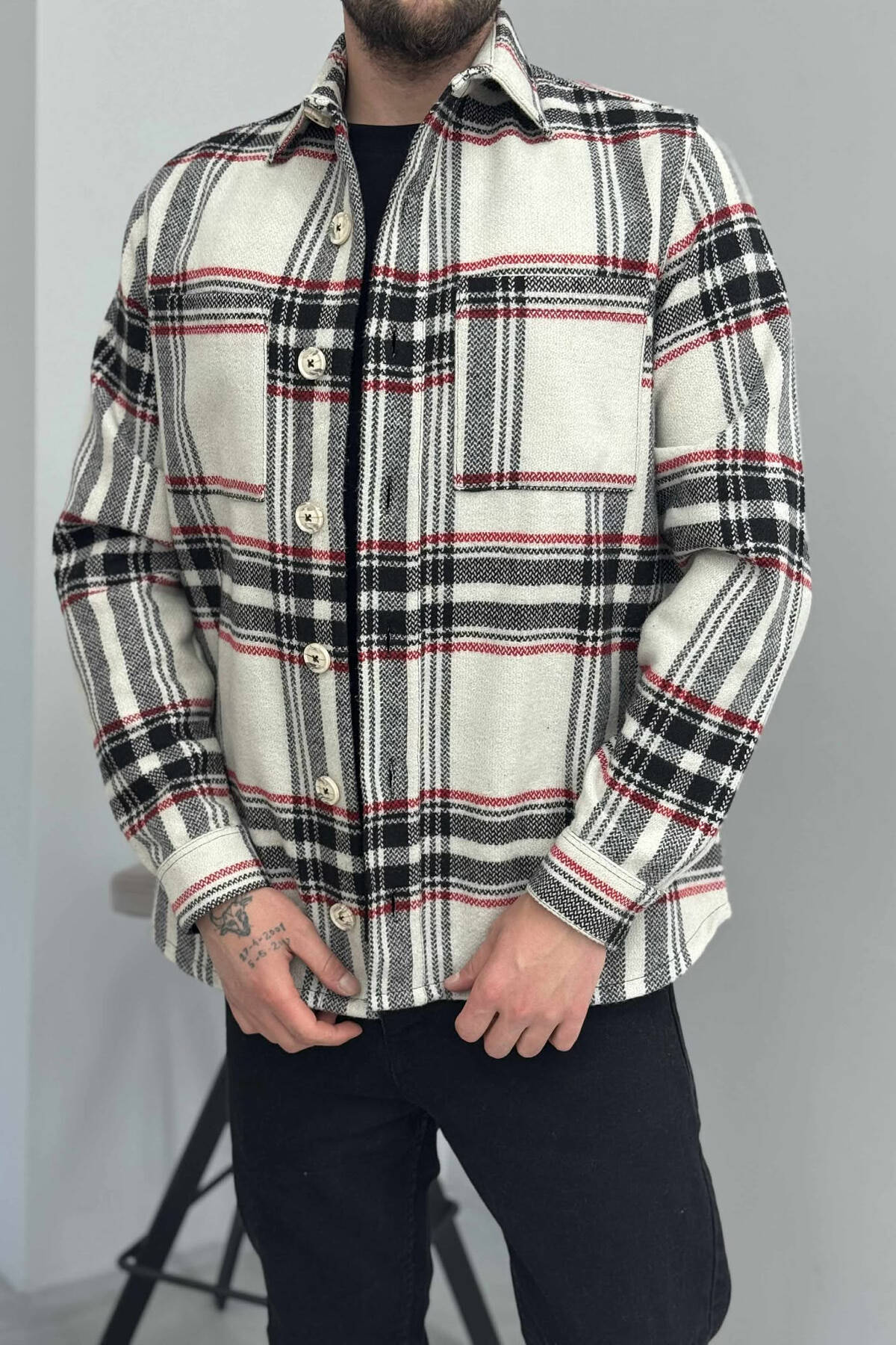 STRIPE DESIGN BUTTONED MEN JACKET CREAM/KREM