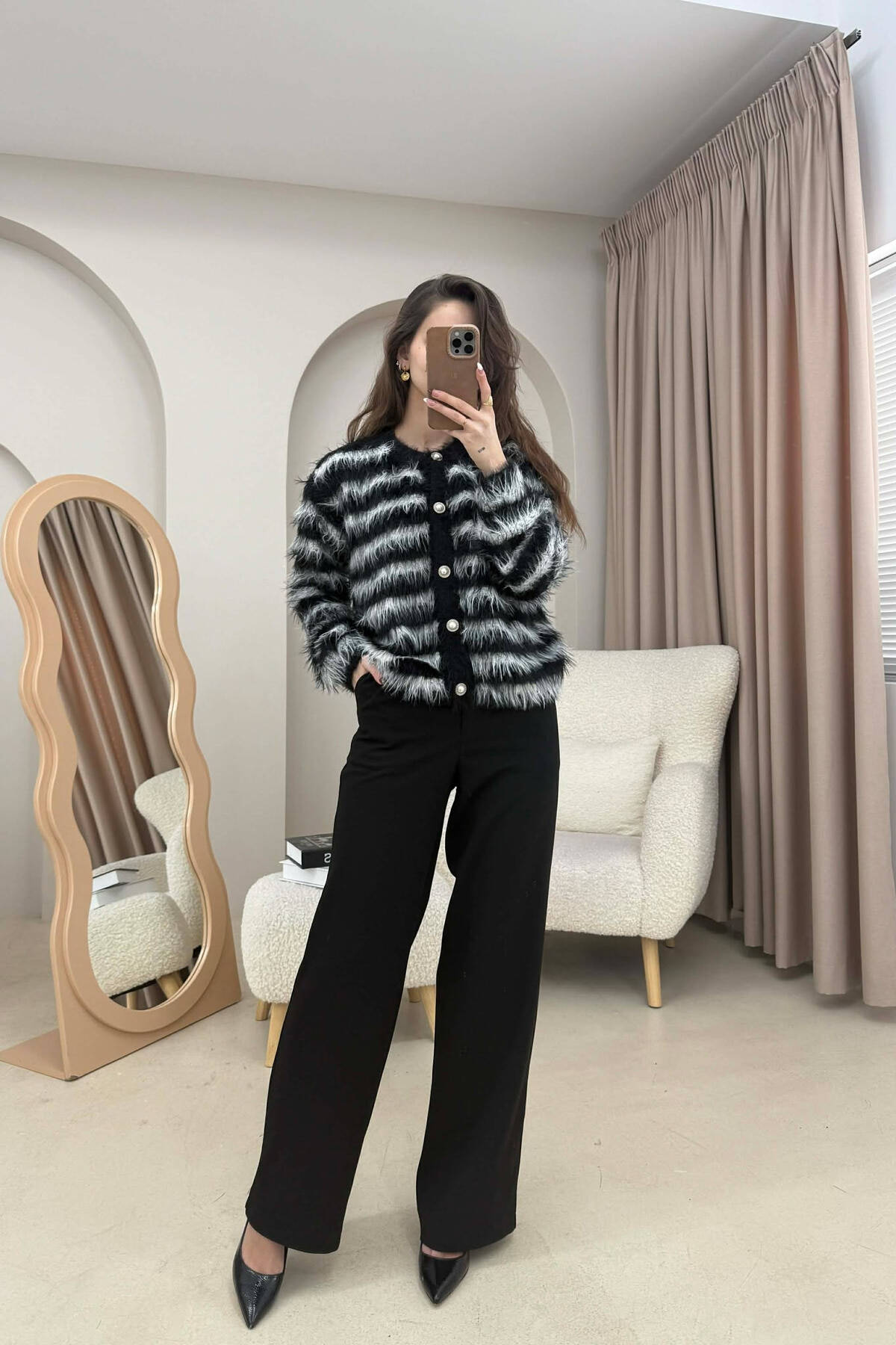 STRIPE DESIGN BUTTONED WOMEN CARDIGAN BLACK/ E ZEZE