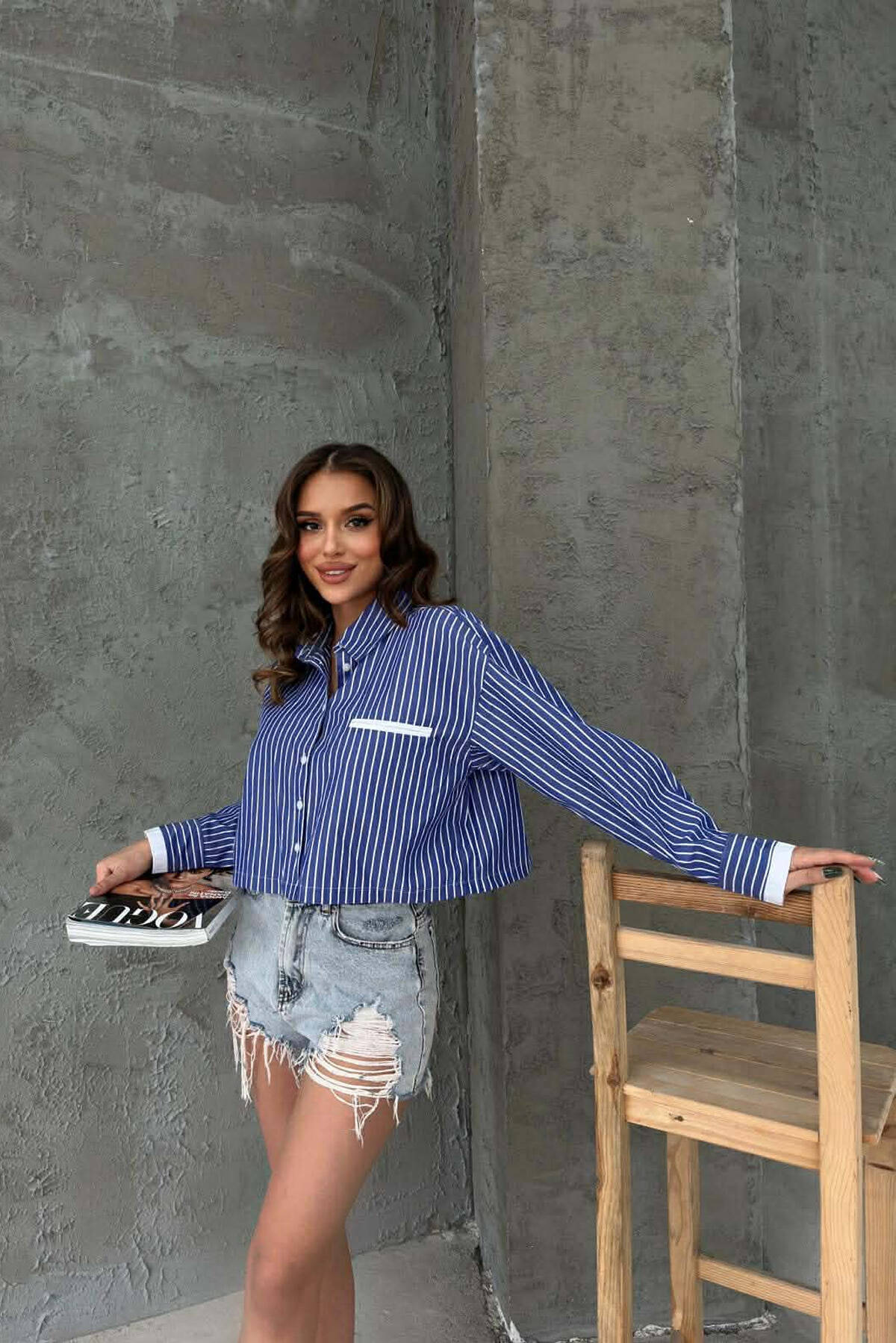 STRIPE DESIGN CROPPED WOMEN SHIRT BLUE/BLU