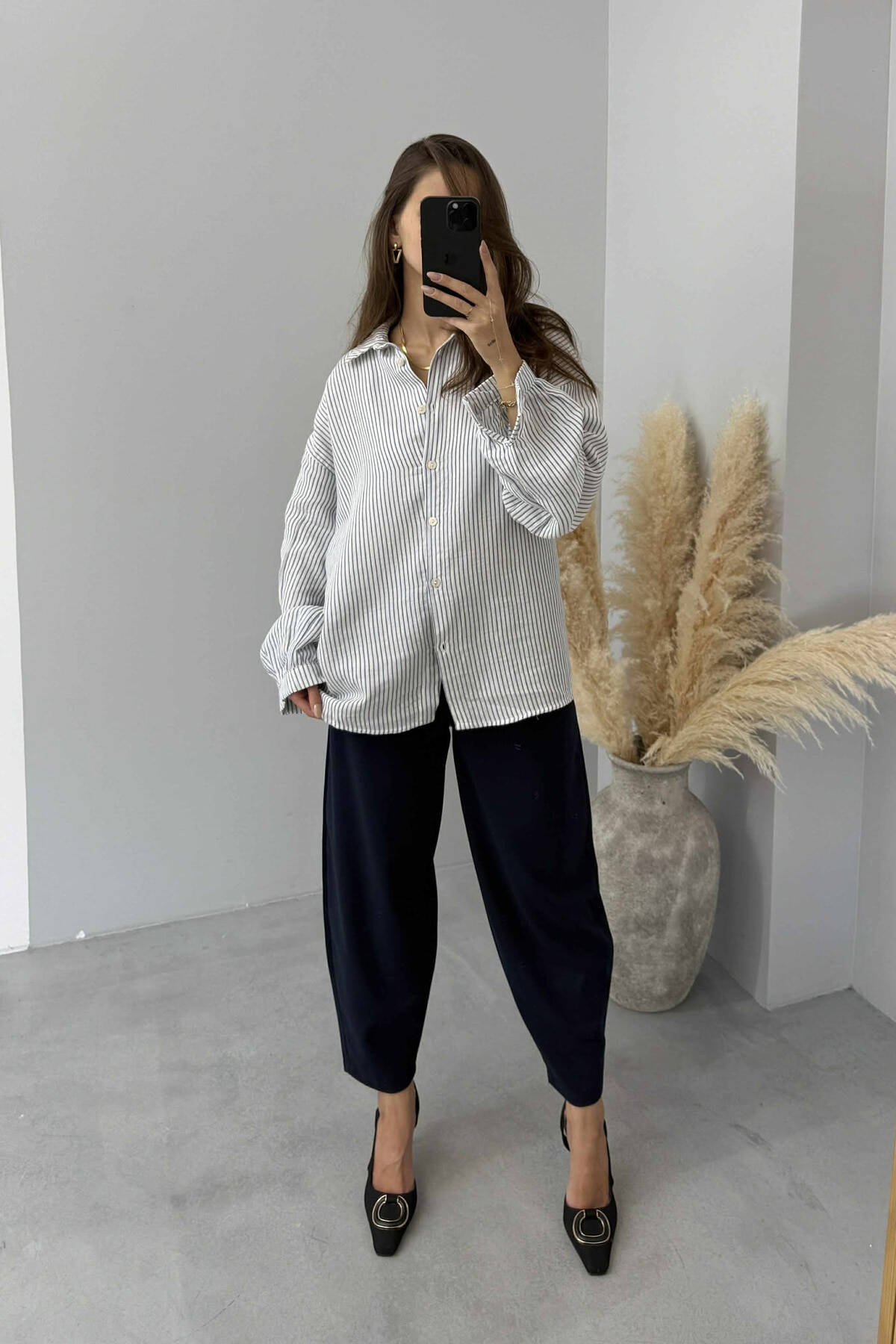 STRIPE DESIGN LINEN BLEND WOMEN SHIRT BLUE/BLU