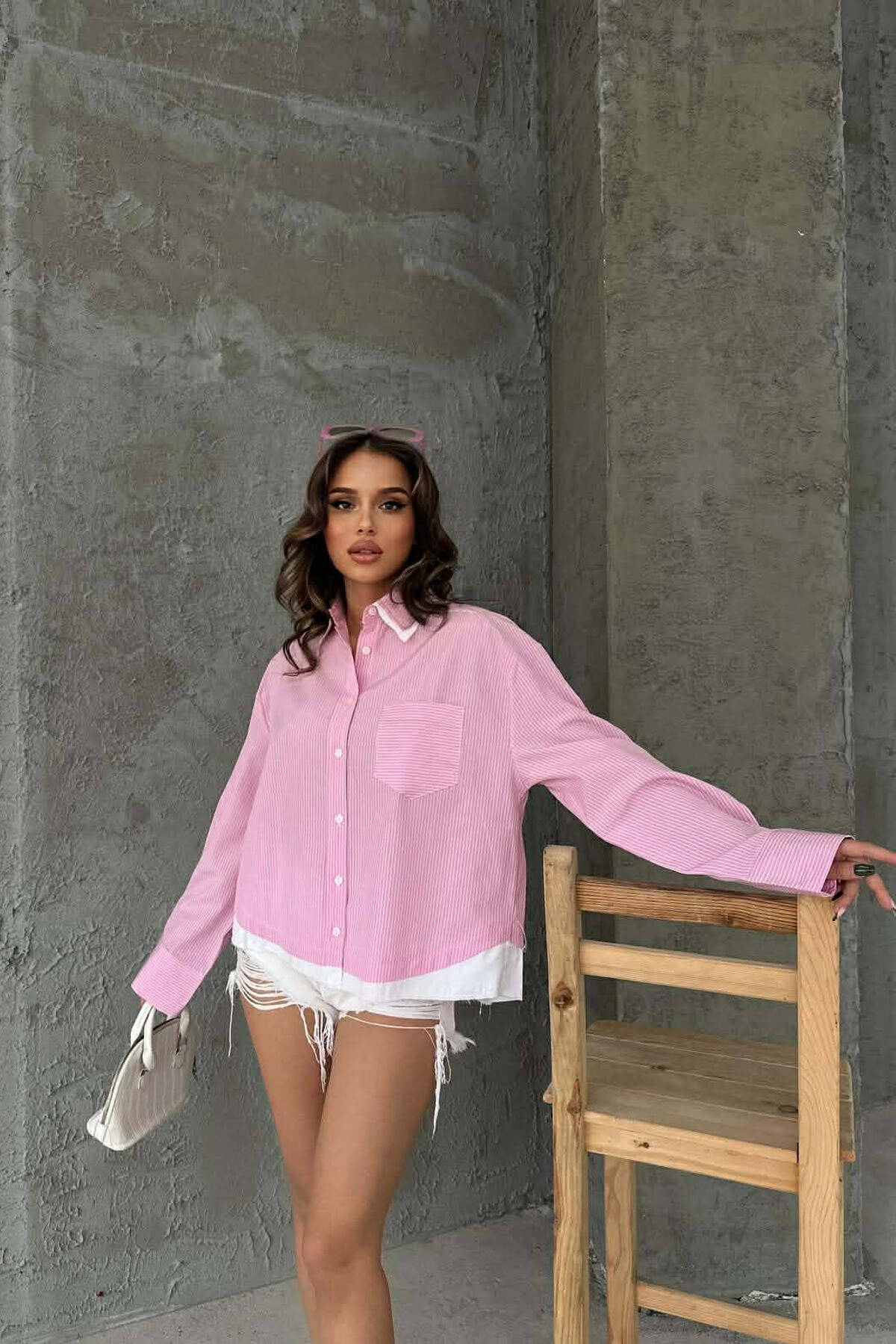 STRIPE DESIGN LONG SLEEVE WOMEN SHIRT PINK/ROZE