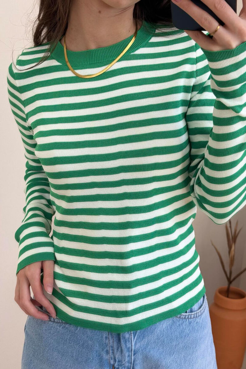 STRIPE DESIGN ROUND NECK WOMEN SWEATER GREEN/JESHILE
