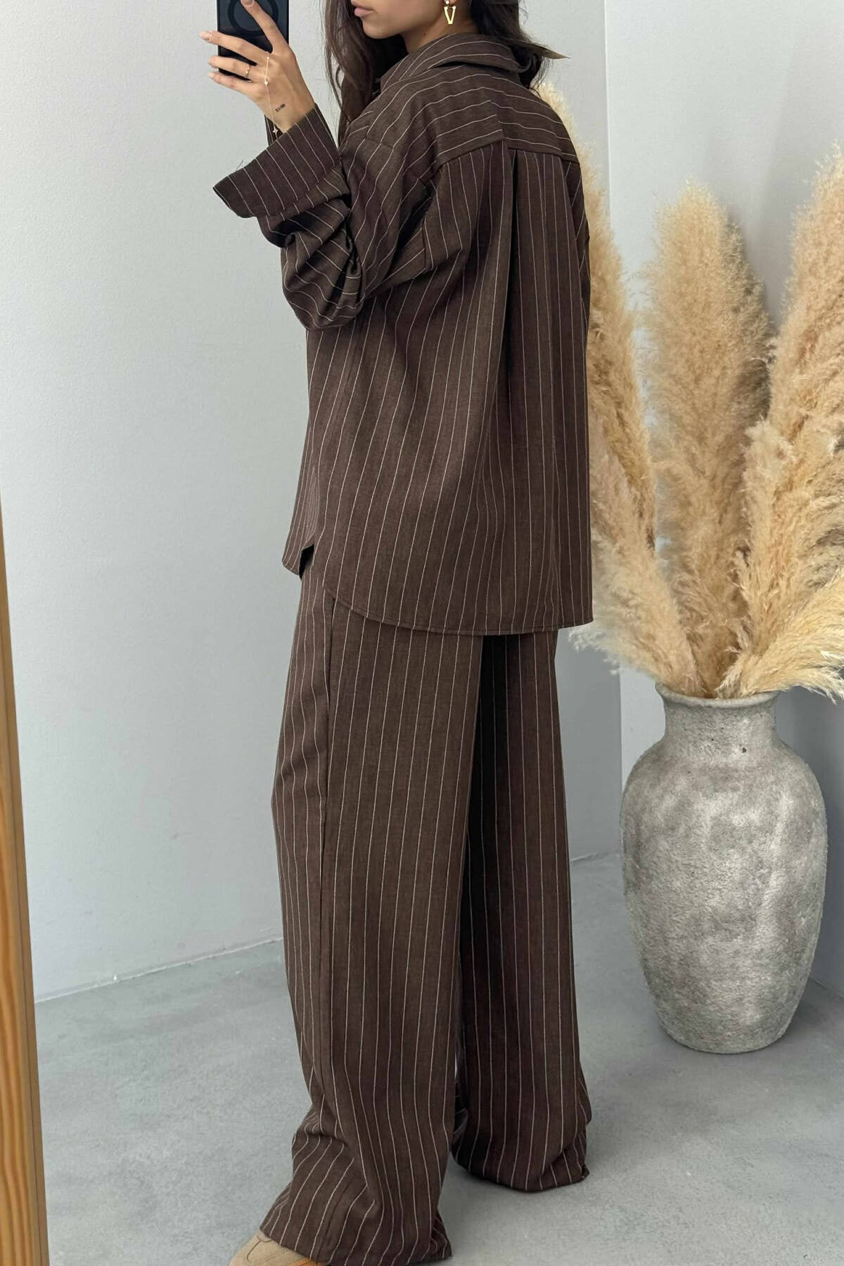 STRIPE DESIGN SHIRT+TROUSERS WOMEN SET BROWN/KAFE