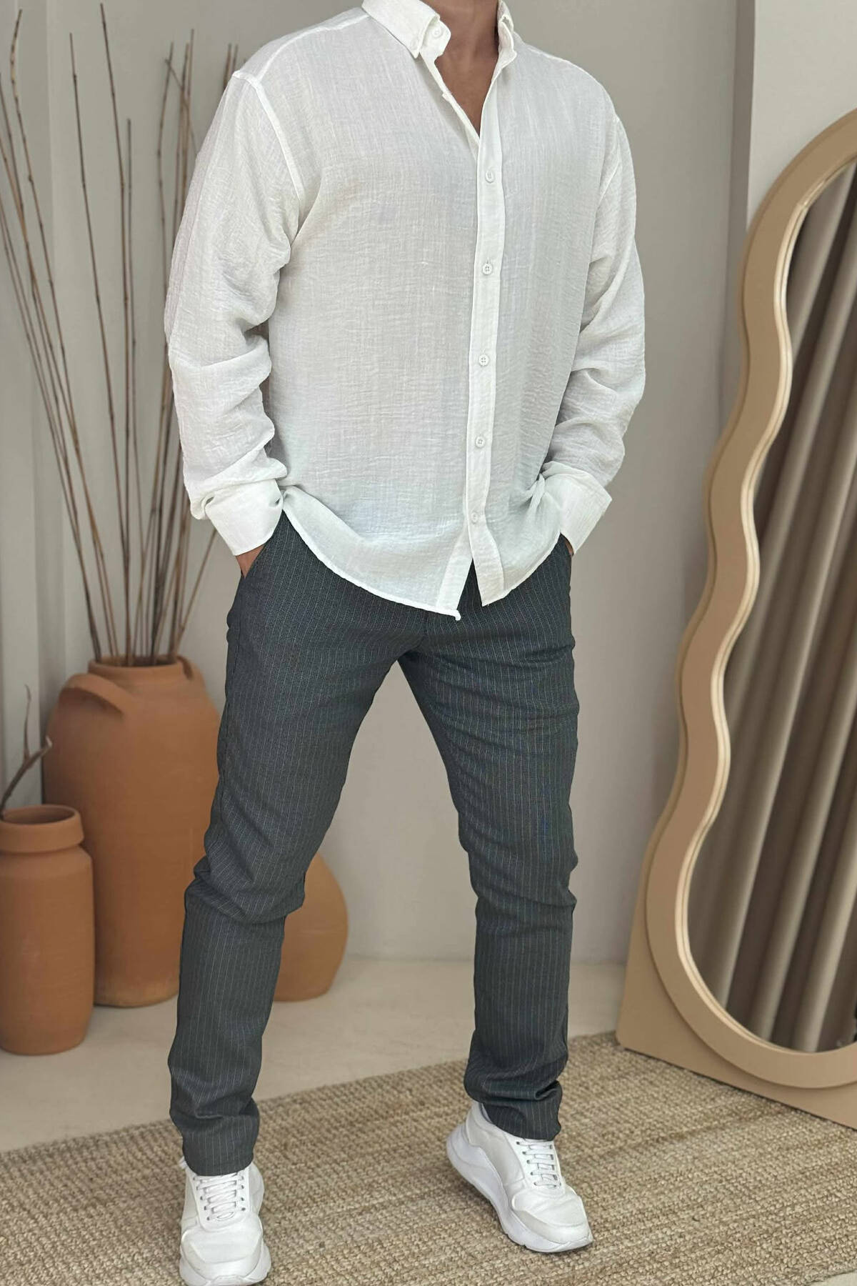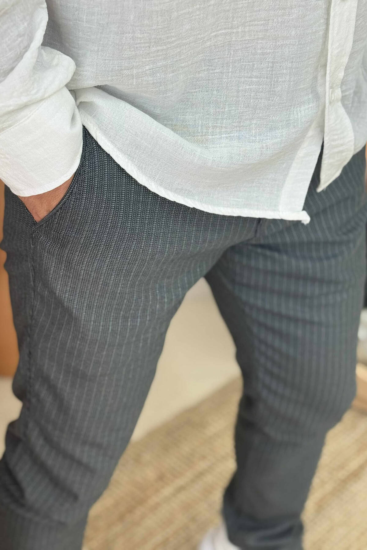 PANTALLONA NJËNGJYRËSHE ELASTIKE NË BELI DHE ME LIDHËSE PËR MESHKUJ NË NGJYRËN GRI