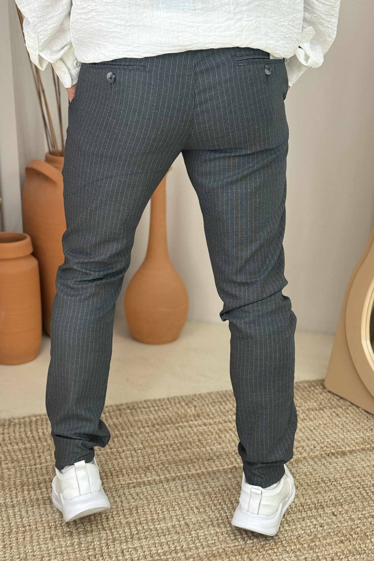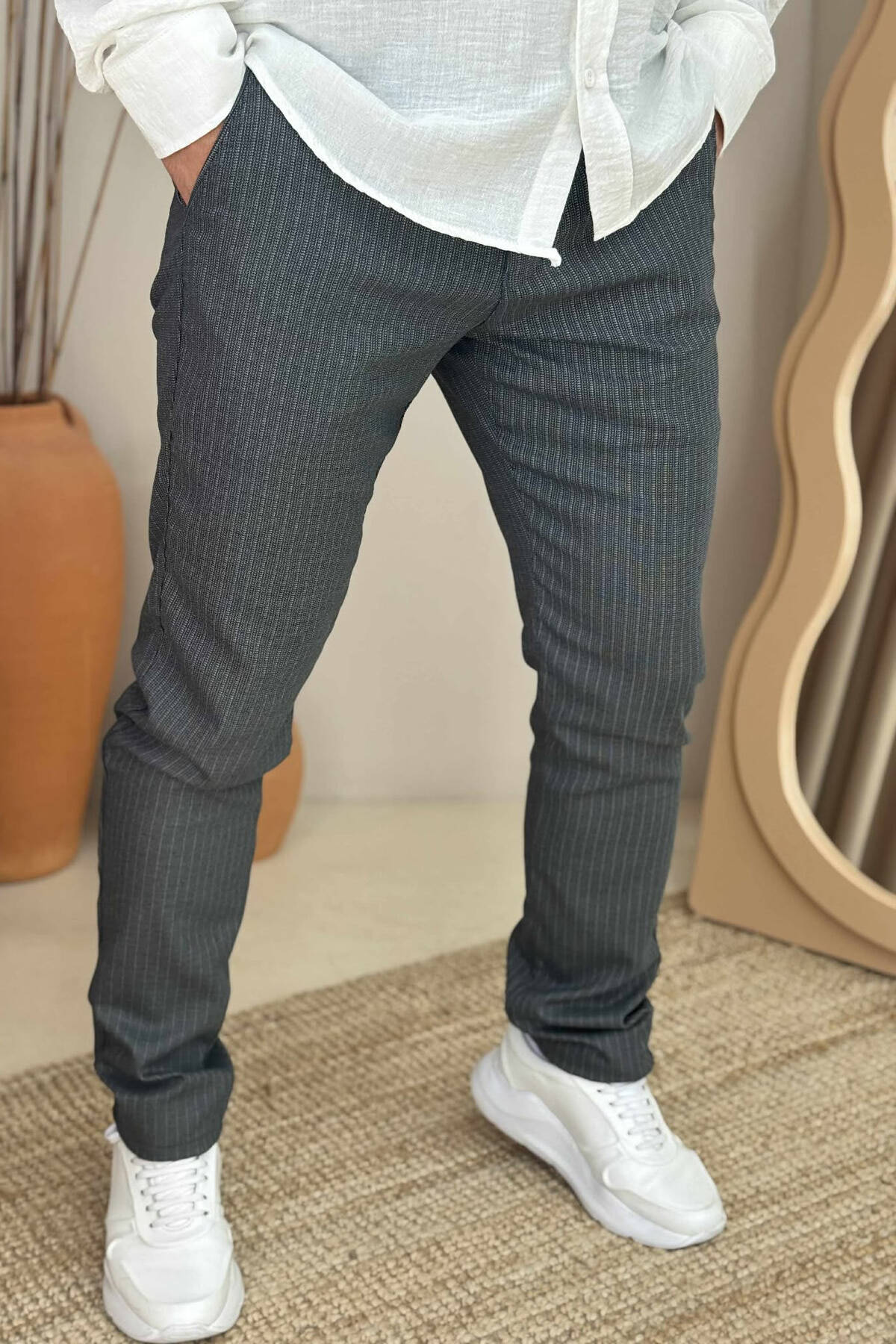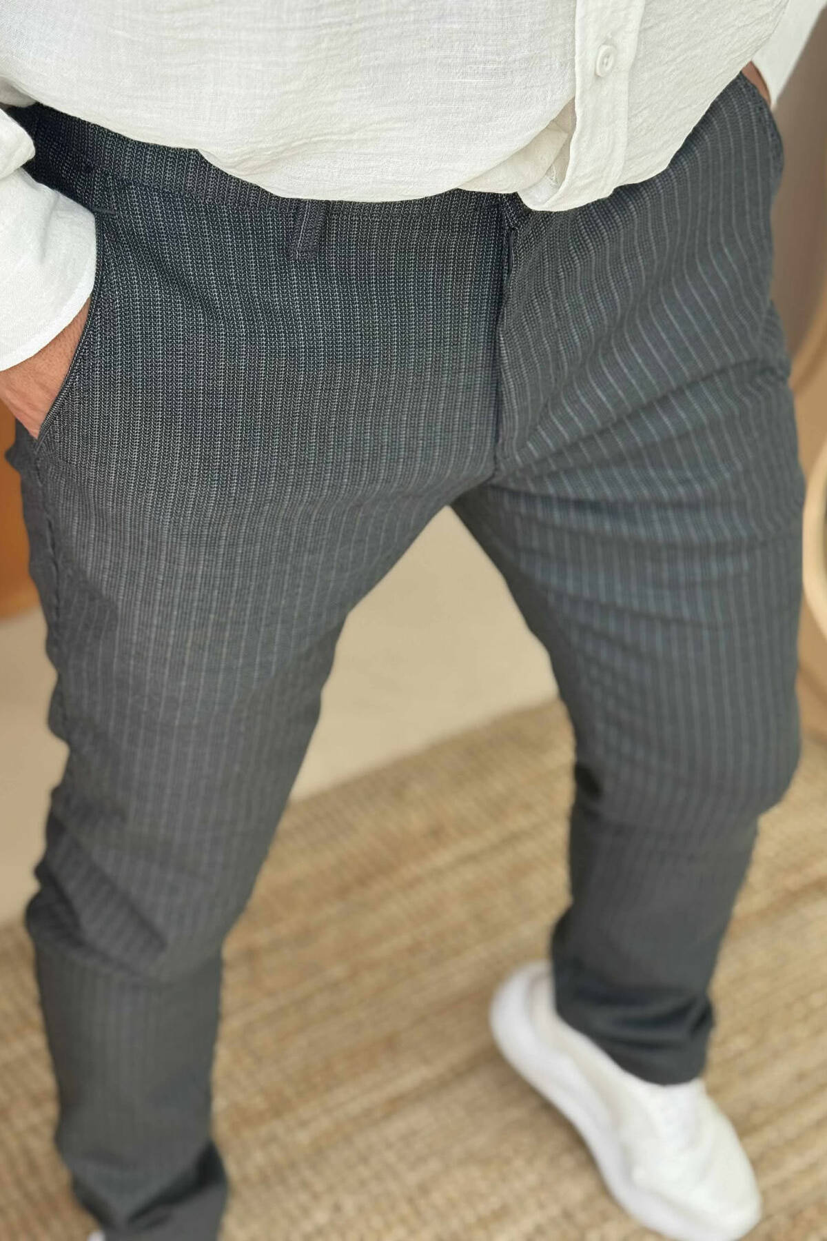 PANTALLONA TË THJESHTA ME DIZAJNIN E VIJAVE PËR MESHKUJ NË NGJYRËN JESHILE E ERRËT