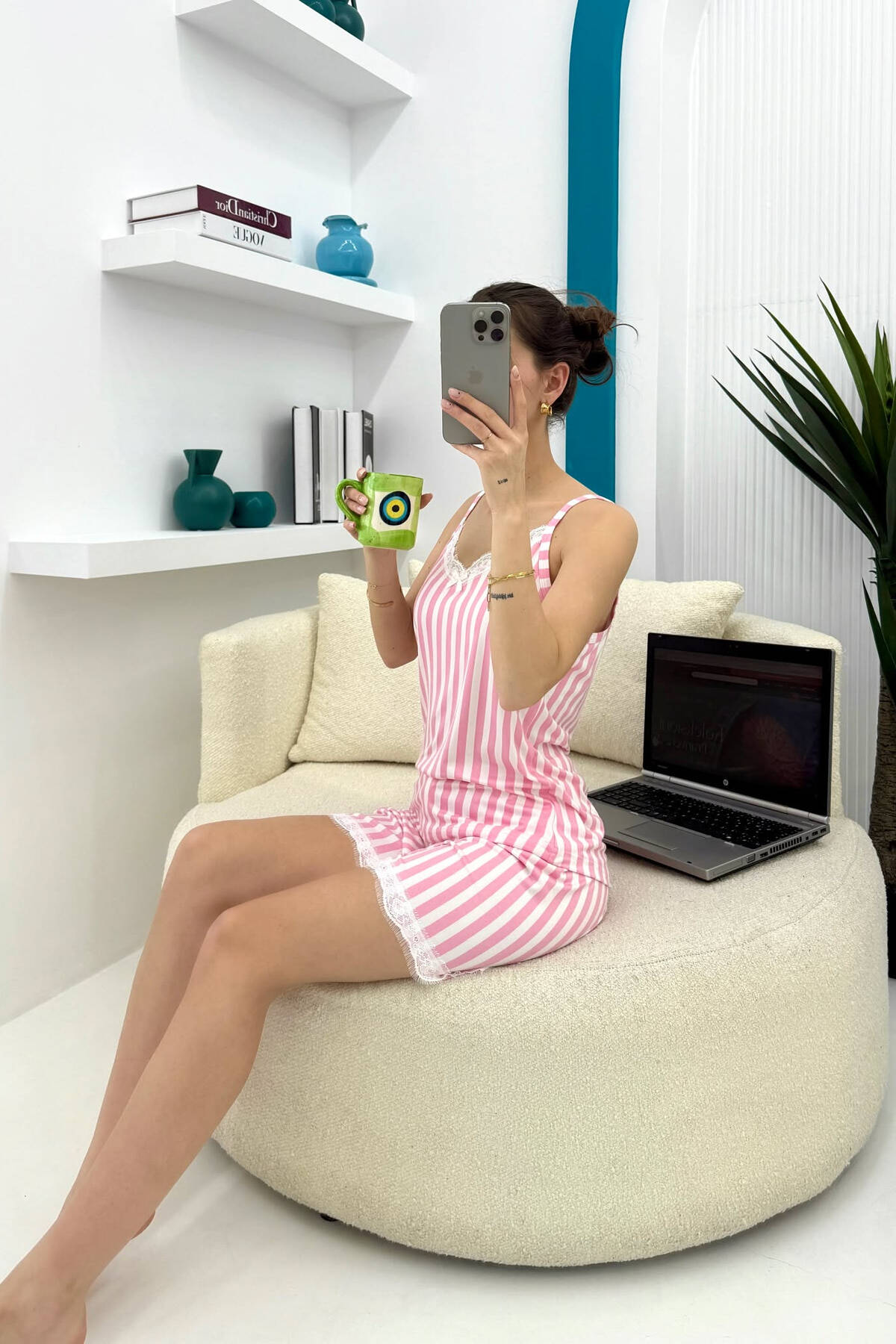 PIZHAME KËMISHË ME DIZAJN ME VIJA+TUTA PËR FEMRA NË NGJYRË ROZË