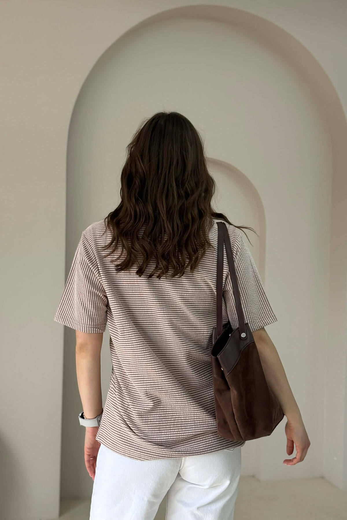 STRIPE DESIGN WOMAN T- SHIRT + 6 PAIR SOCKS BROWN/KAFE