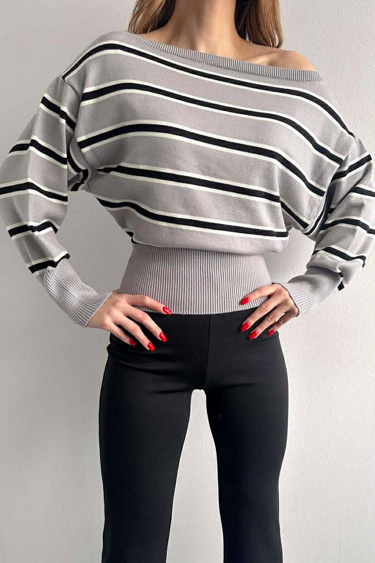 STRIPE DESIGN WOMEN SWEATER GREY/GRI