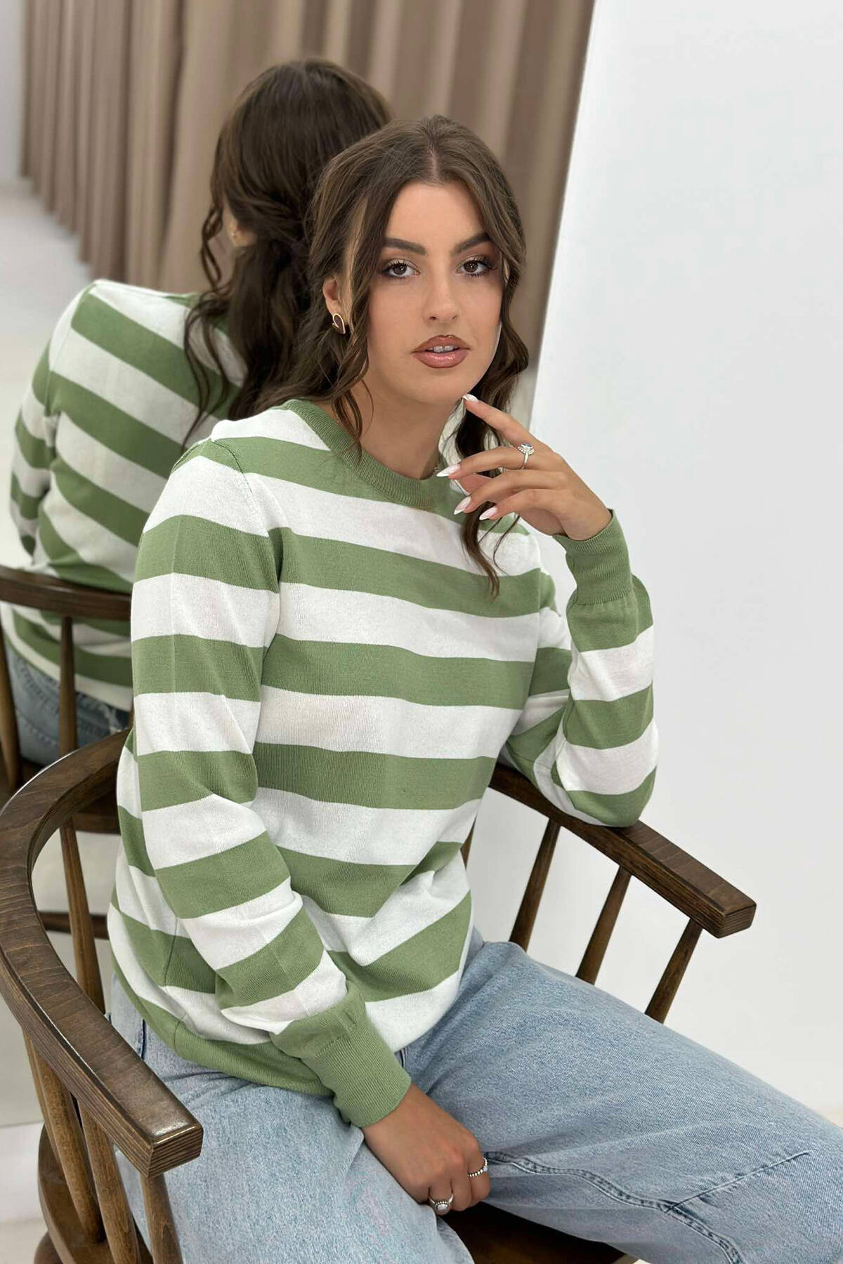 STRIPE ROUND NECK WOMEN SWEATSHIRT MINT/MENTE