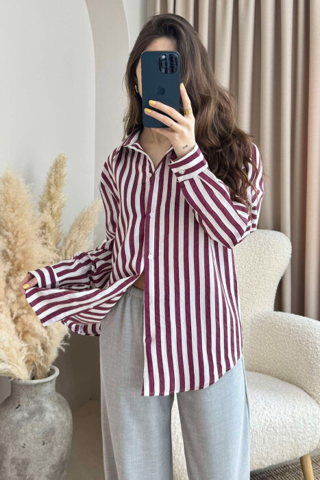 STRIPED LONG SLEEVES WOMEN SHIRT BURGUNDY/VISHNJE