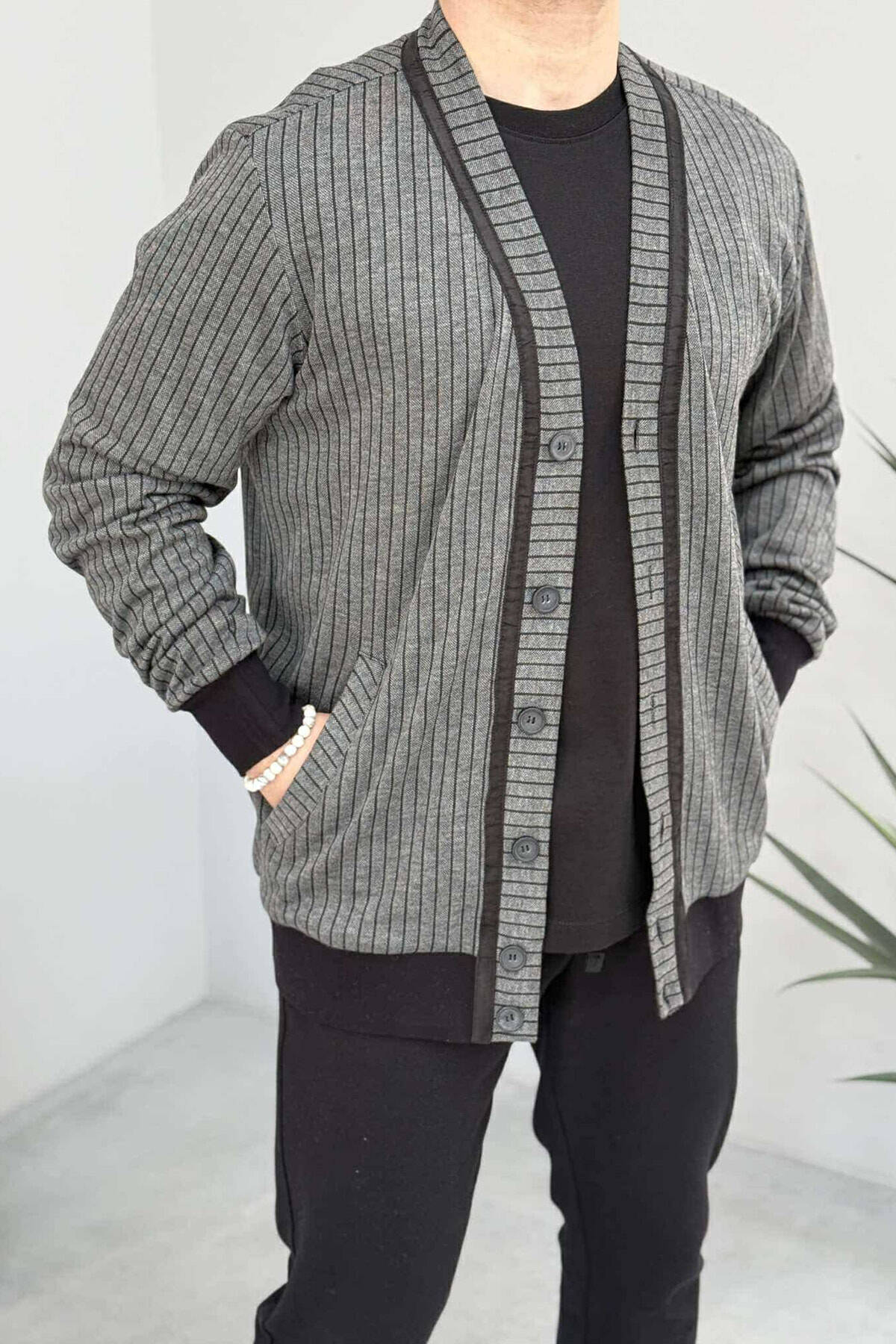 STRIPED SIMPLE MEN CARDIGAN GREY/GRI