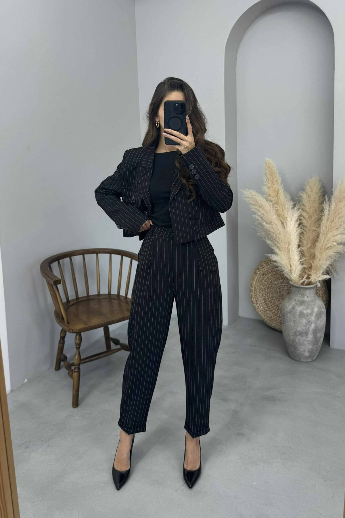 STRIPES DESIGN JACKET+ TROUSERS WOMEN SET BLACK/ E ZEZE