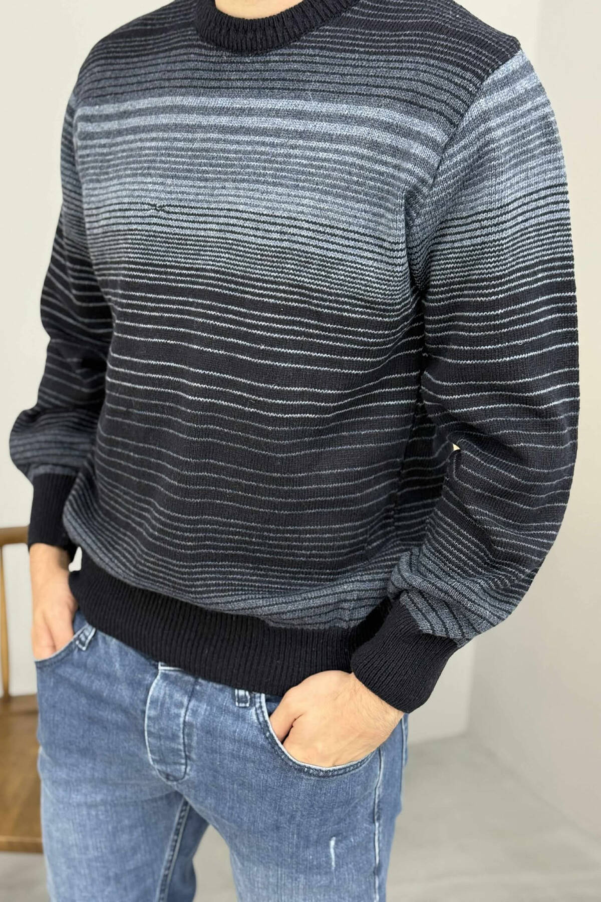 ROUND NECK STRIPES MEN SWEATER DARK GREY/GEE