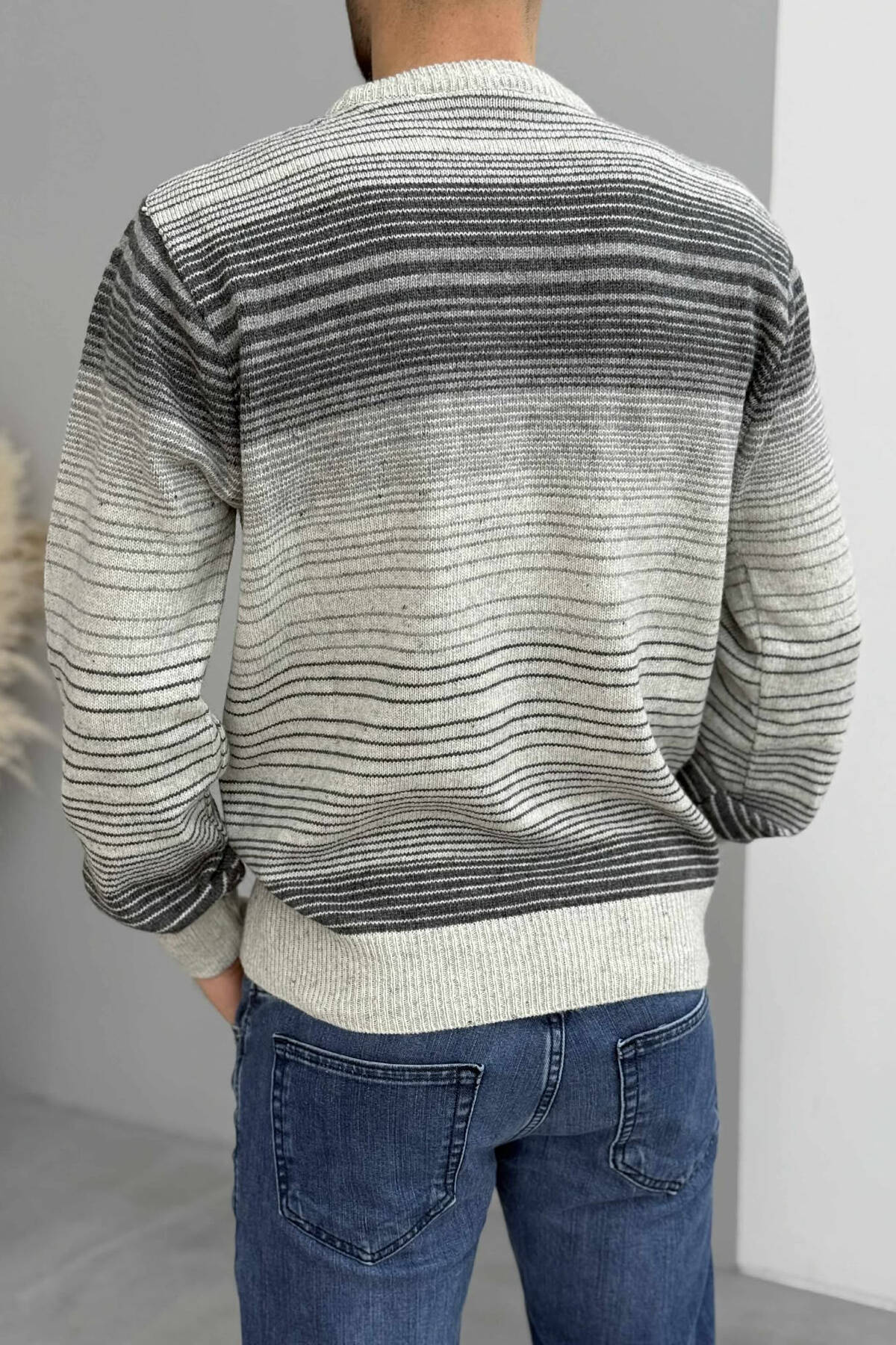 STRIPES DESIGN ROUND NECK KNITTED MEN SWEATER LIGHT GREY/GZ