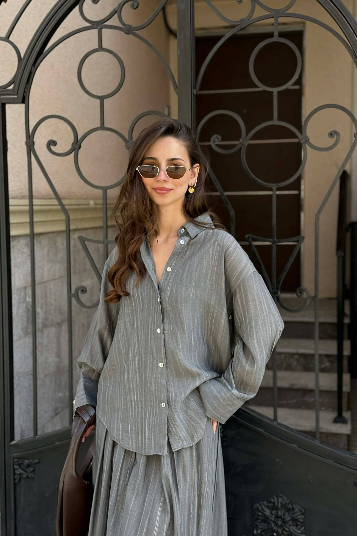 STRIPES DESIGN SHIRT + SKIRT WOMAN SET GREY/GRI