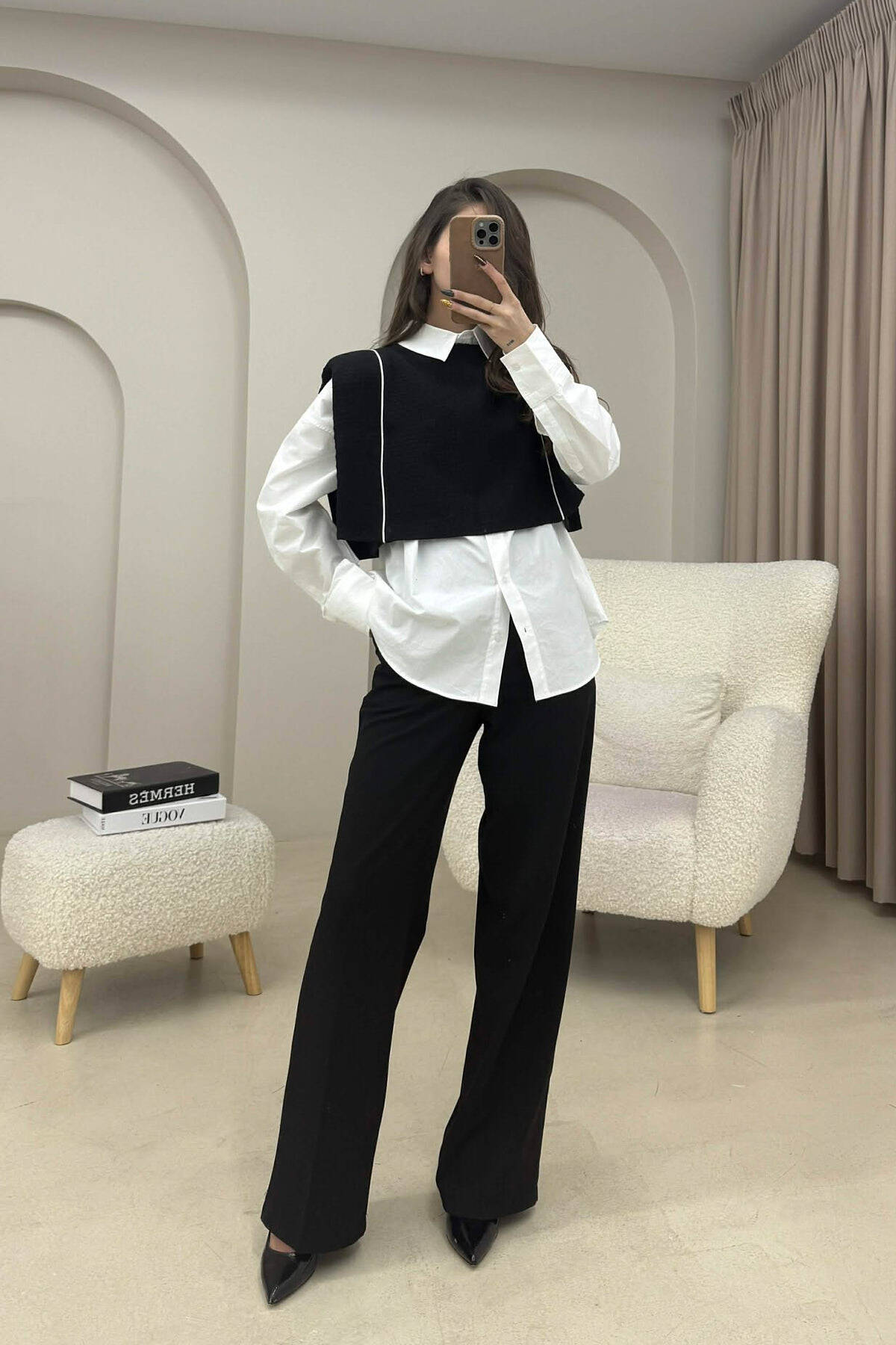 ONE COLOR BUTTON DETAILS WOMAN TANK TOP BLACK/ E ZEZE