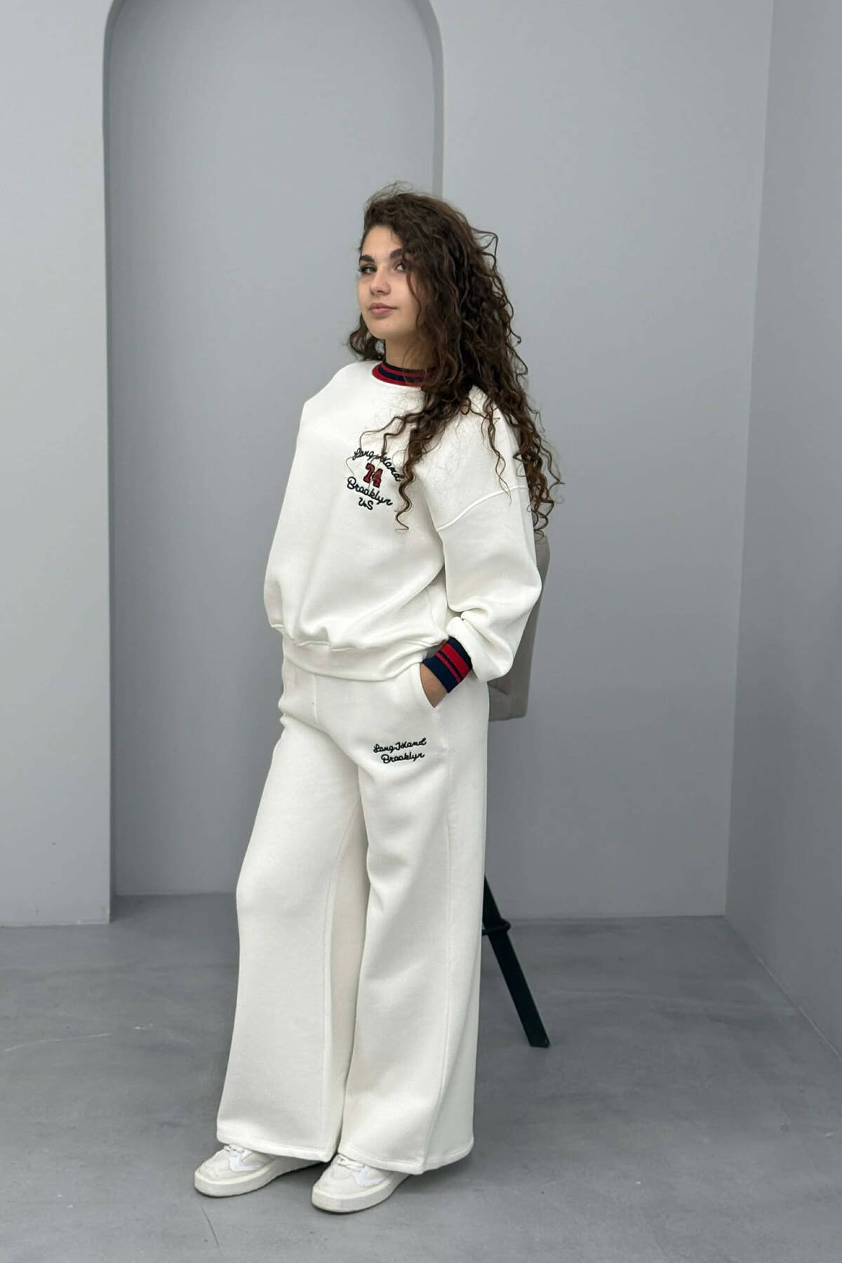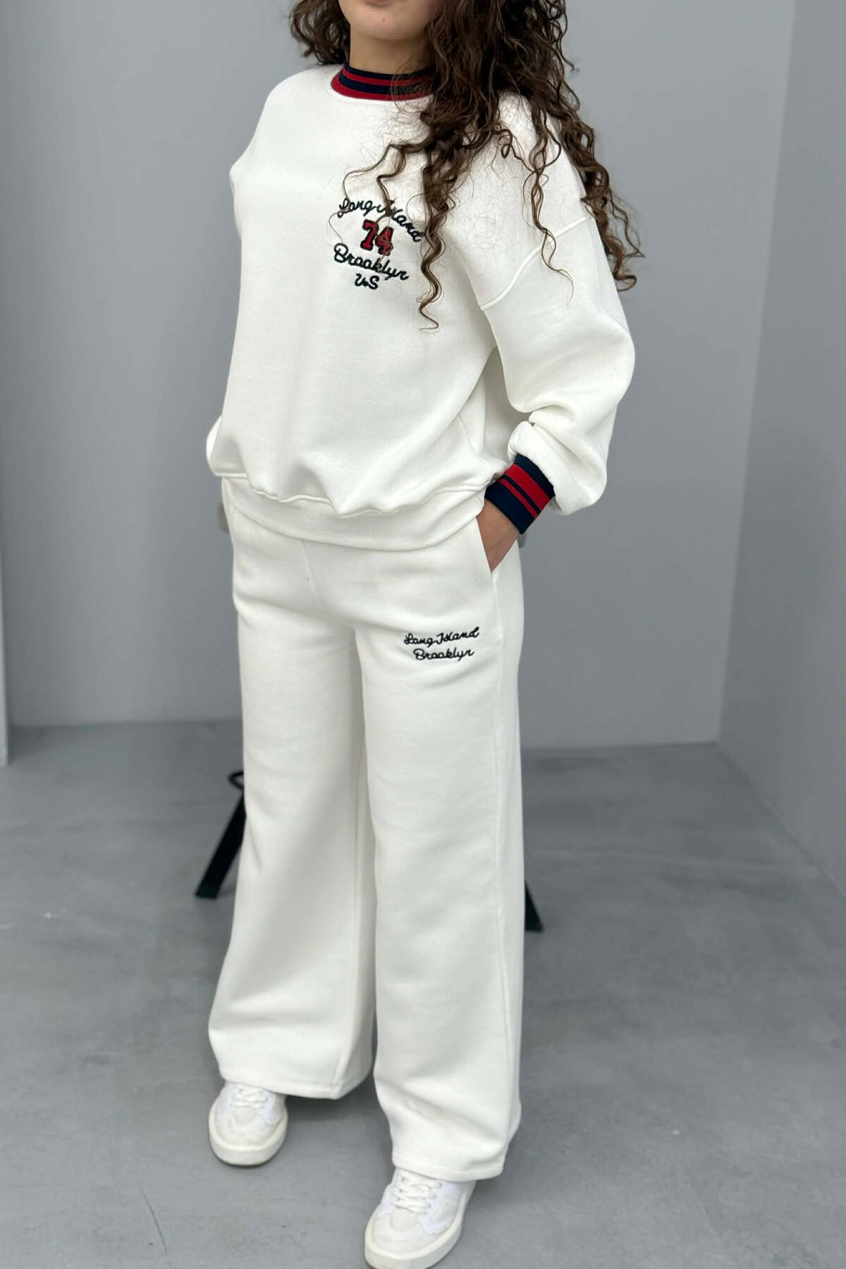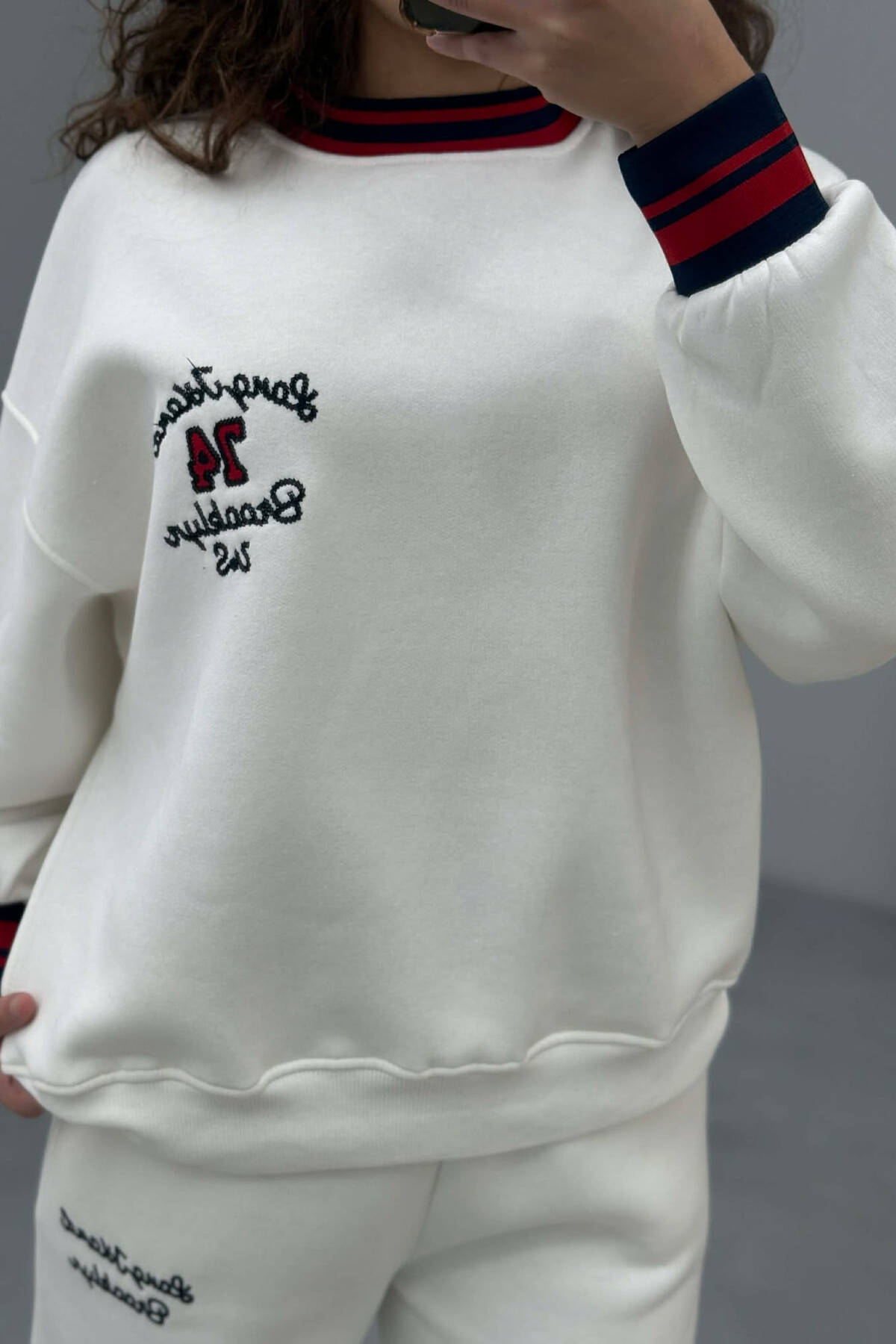 SWEATSHIRT+SWEATPANTS FLUFFY WOMEN SET WHITE-E BARDHE