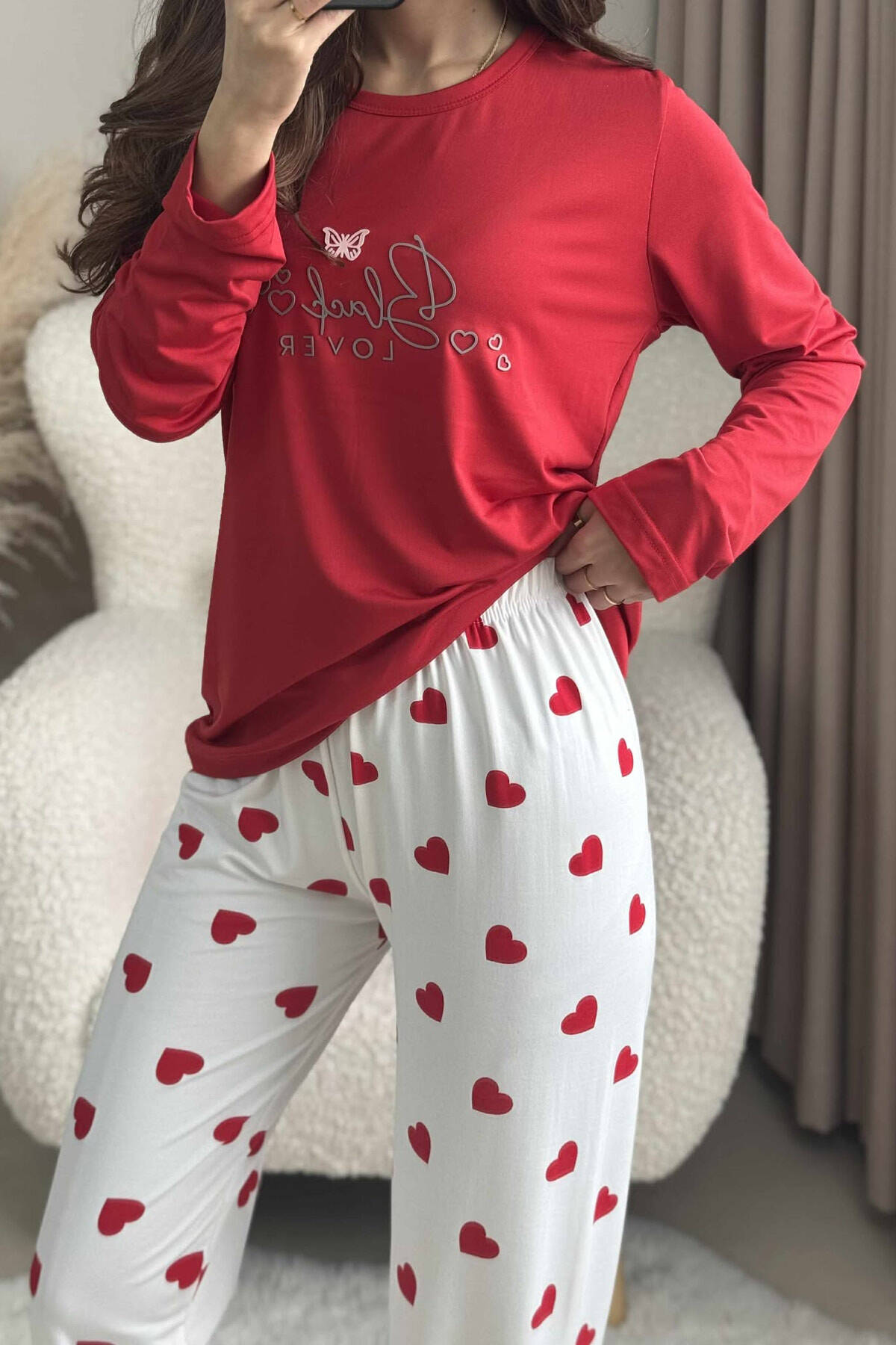 SIMPLE HEARTS DESIGN SHIRT+TROUSERS WOMEN PYJAMAS RED/E KUQE