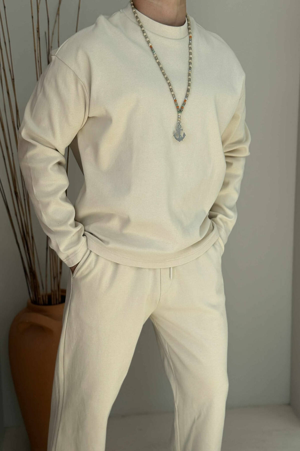 SWEATSHIRT+SWEATPANTS ONE COLOR MEN SET CREAM/KREM
