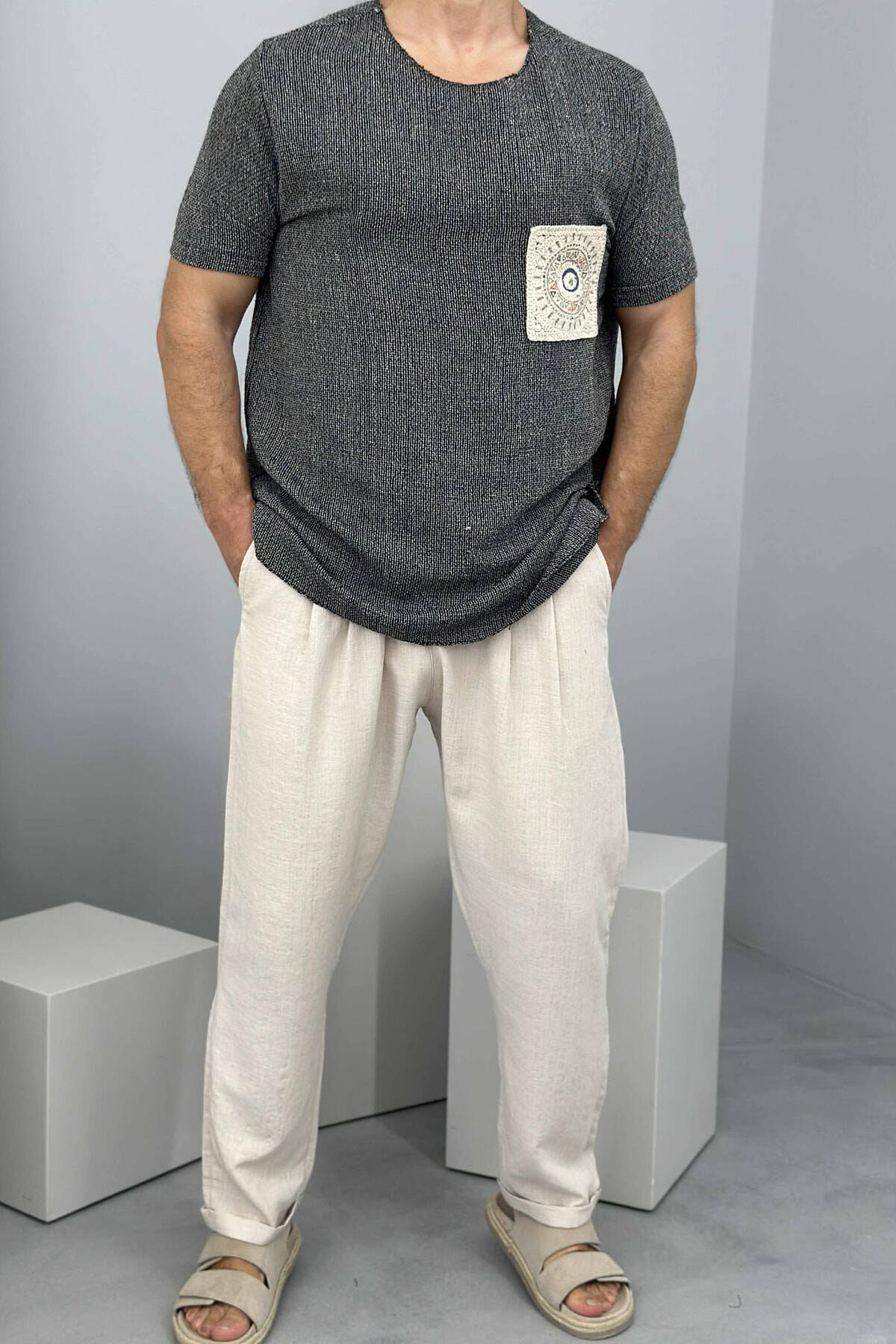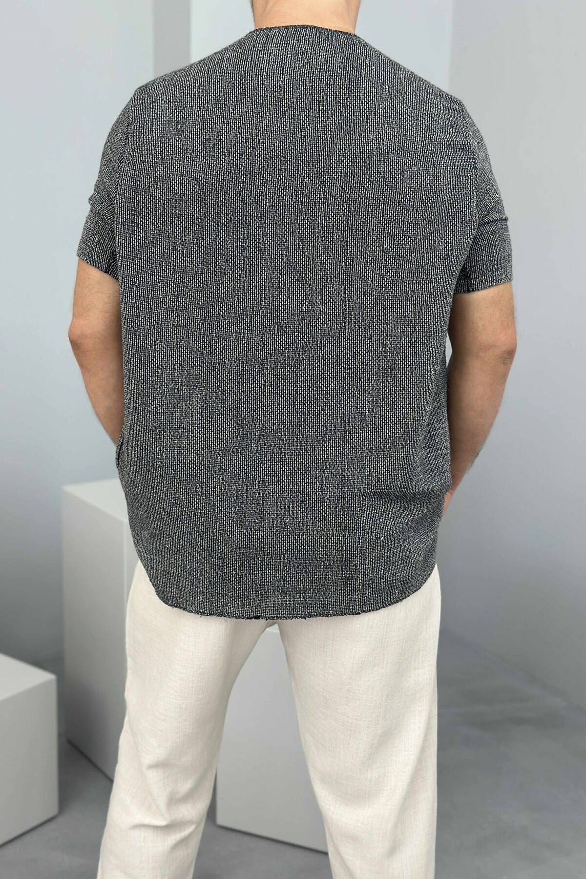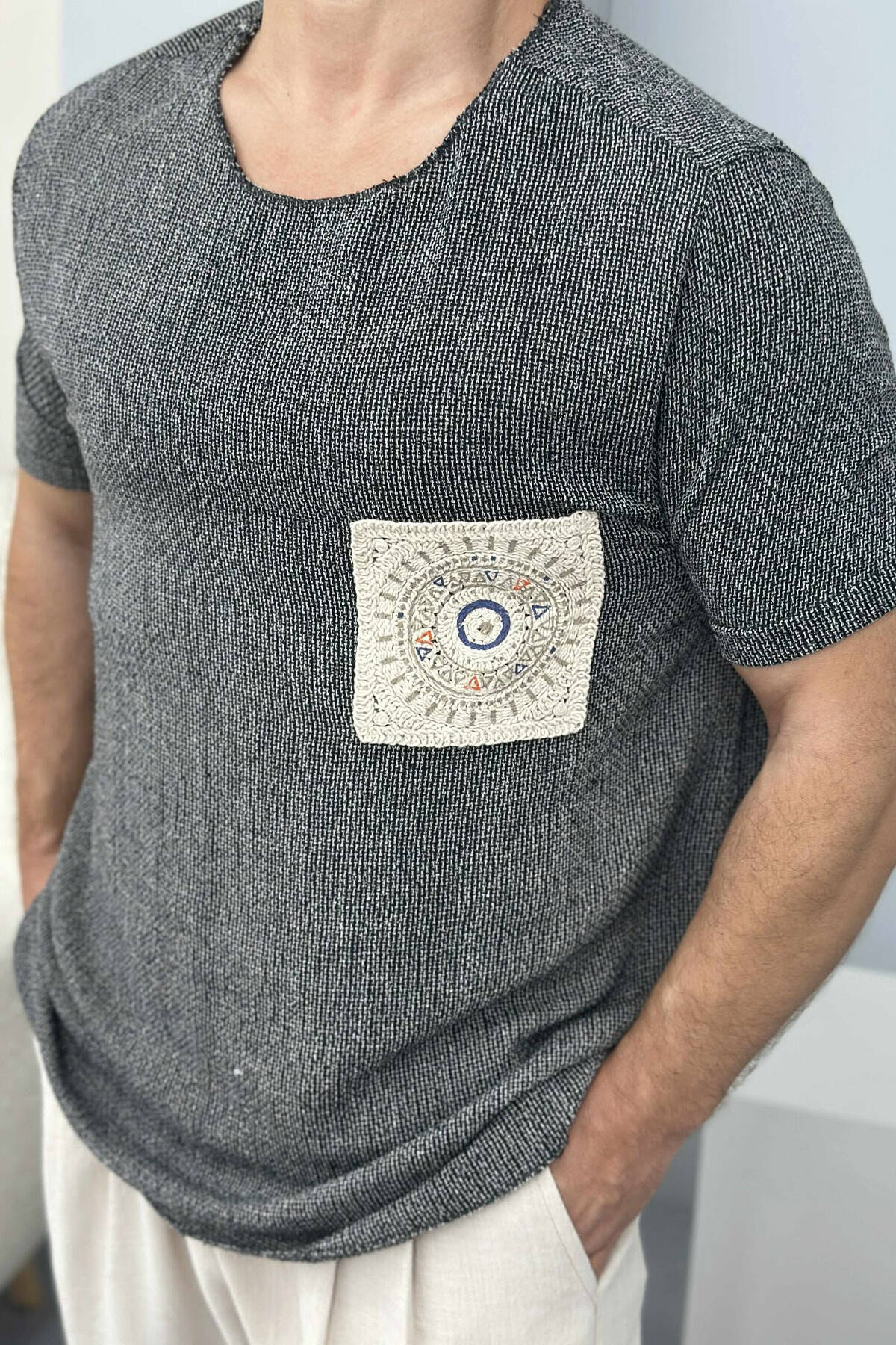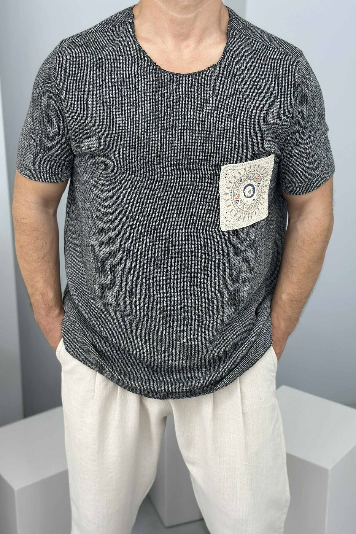 T-SHIRT I THJESHTË ME DETAJE PËR MESHKUJ NË NGJYRËN GRI E ERRËT