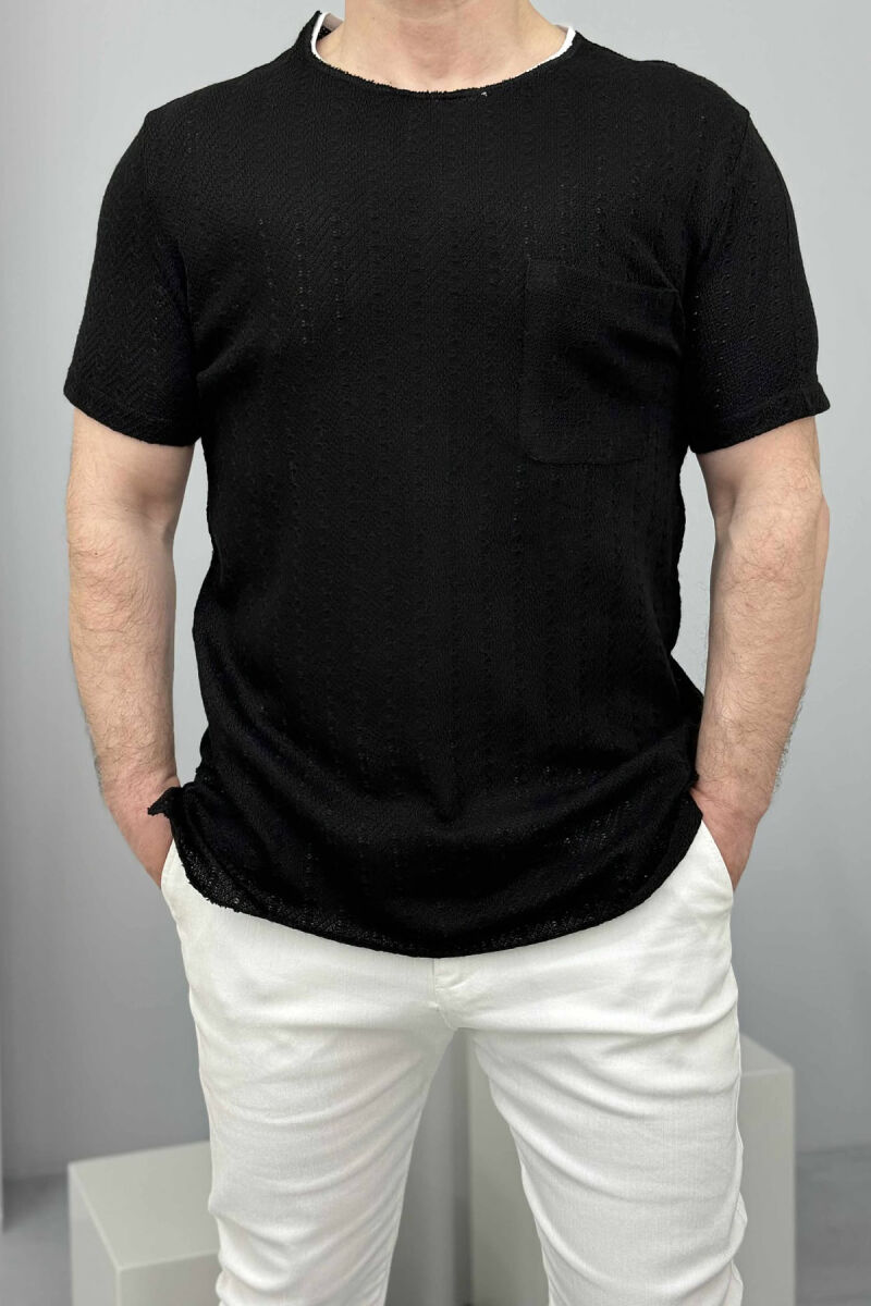 T-SHIRT I THJESHTË ME DETAJIN E XHEPIT PËR MESHKUJ NË NGJYRËN E ZEZË