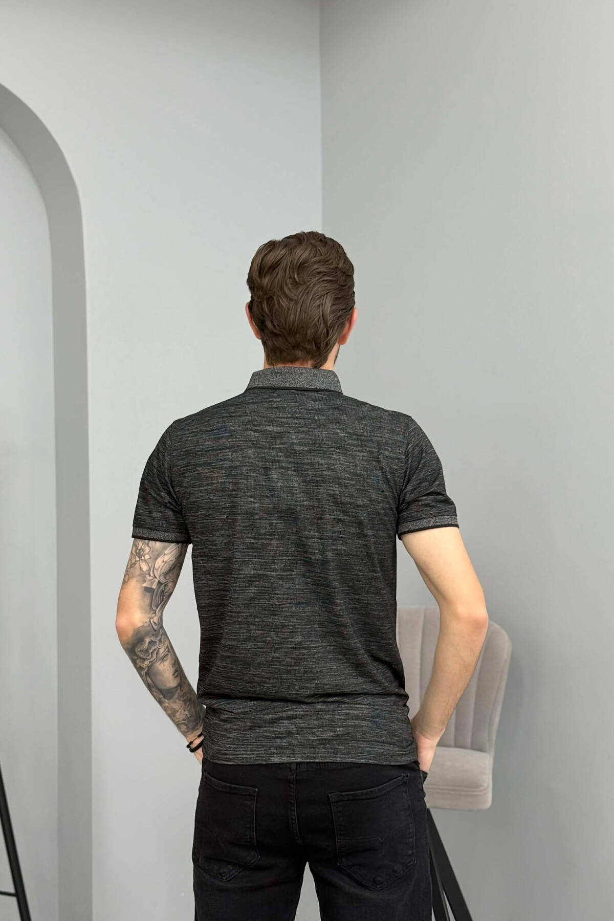 T-SHIRT NJE NGJYRESH ME JAKE POLO PER MESHKUJ NE NGJYRE GRI