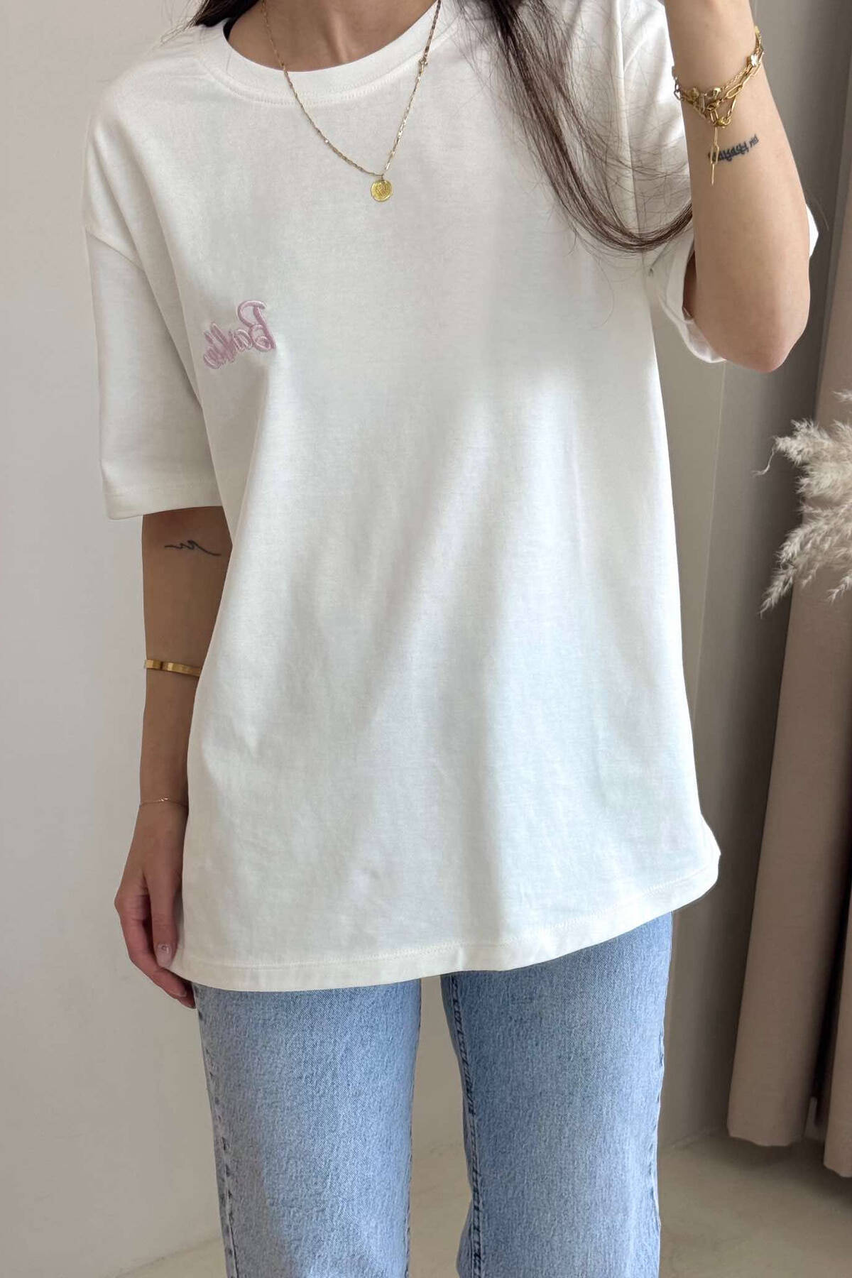 T-SHIRT I THJESHTË ME SHKRIM BARBIE PËR FEMRA NË NGJYRËN E BARDHË