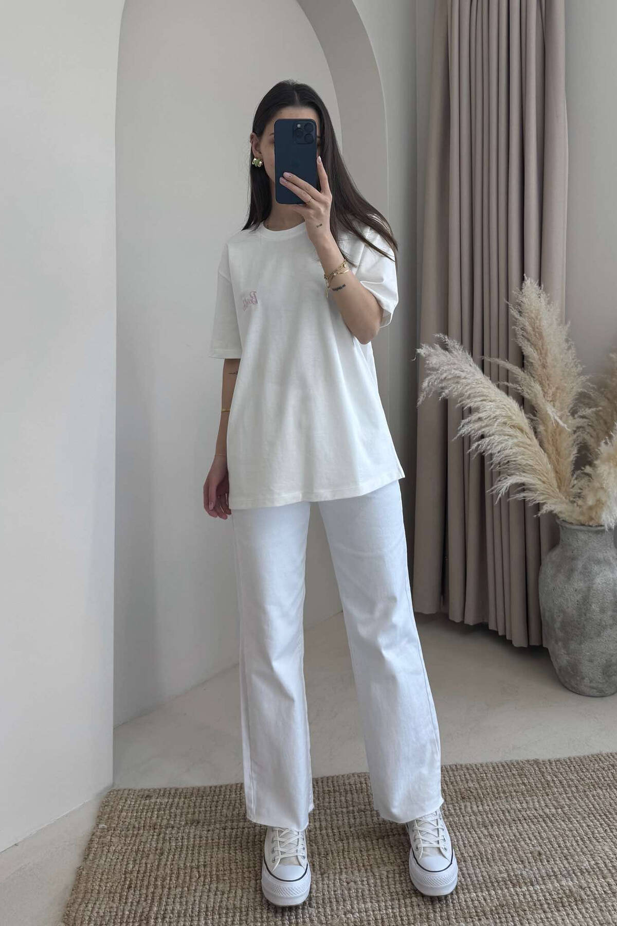 T-SHIRT ME DETAJE TEK PJESA E QAFES PER FEMRA NE NGJYRE TE BARDHE
