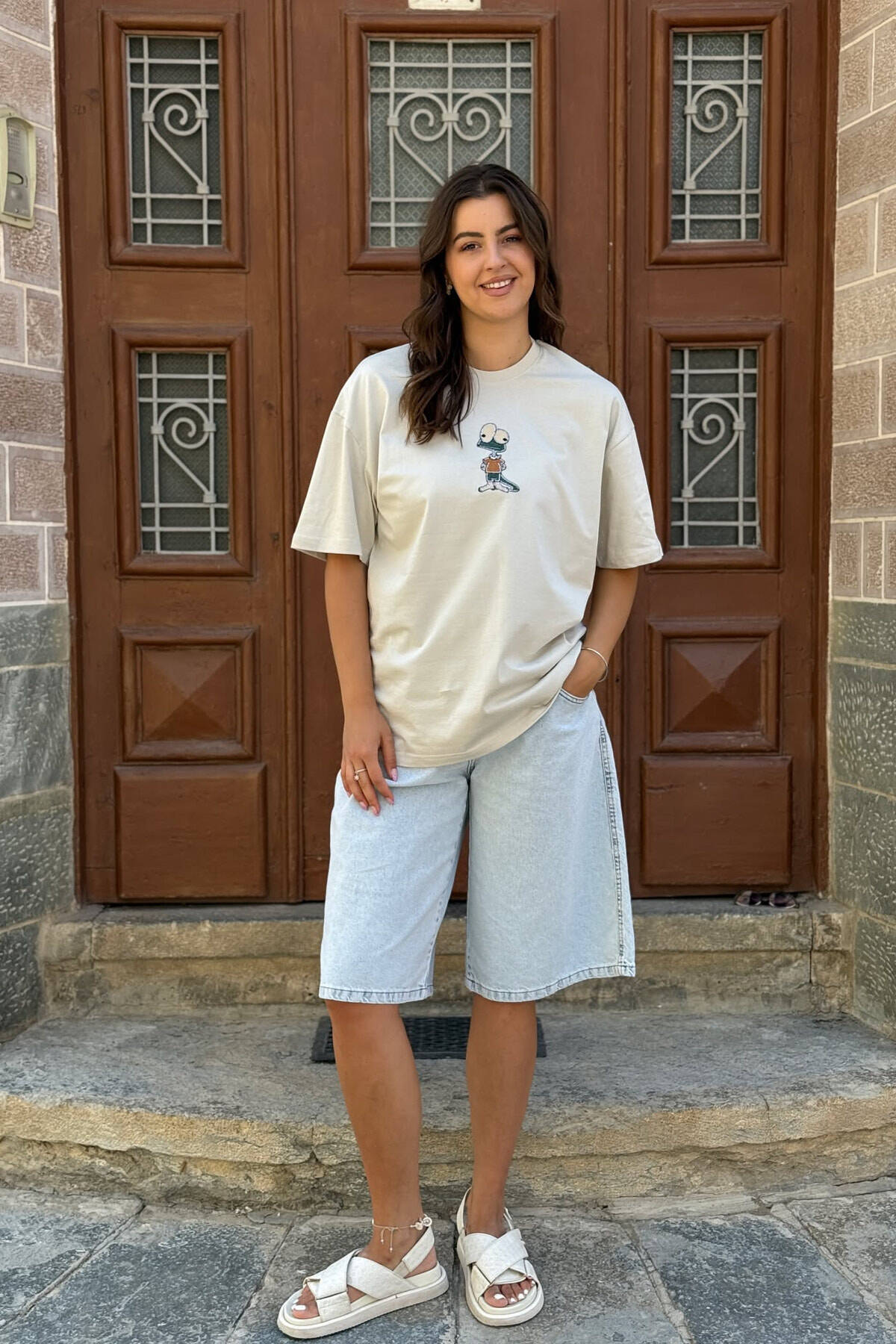 T-SHIRT I THJESHTË ME IMAZH PËR FEMRA NË NGJYRËN GRI E ZBARDHUR
