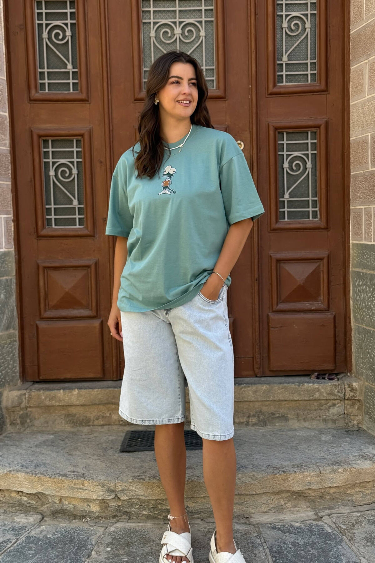 T-SHIRT I THJESHTË ME IMAZH PËR FEMRA NË NGJYRËN GURKALI